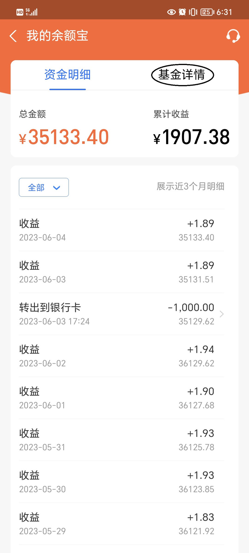 進(jìn)入我的余額寶頁(yè)面,點(diǎn)擊“基金詳情”。