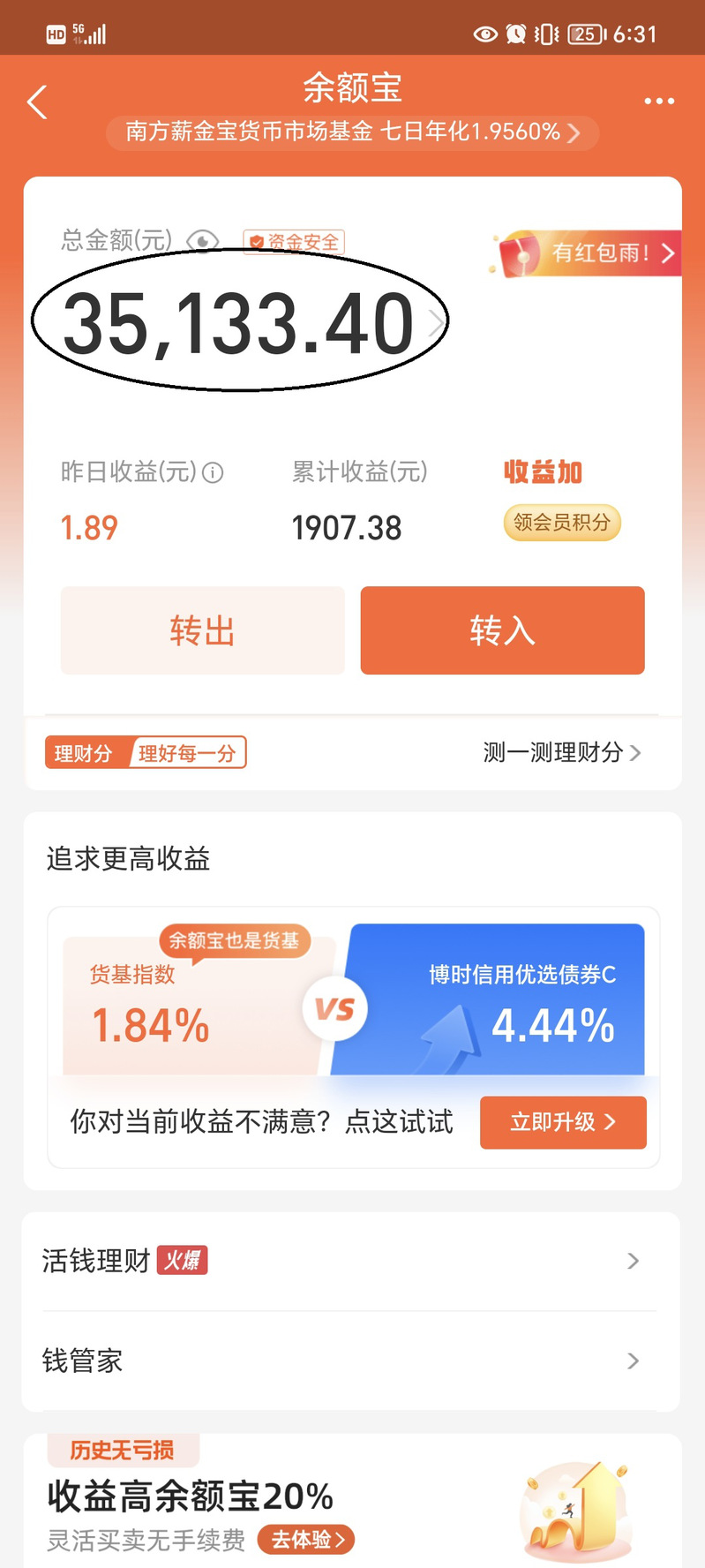 進(jìn)入余額寶頁(yè)面,點(diǎn)擊金額。