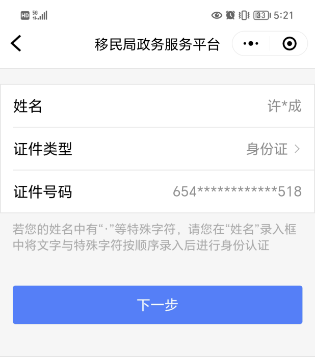 進(jìn)入實(shí)名認(rèn)證環(huán)節(jié),輸入本人姓名、身份證號(hào),點(diǎn)擊“下一步”。