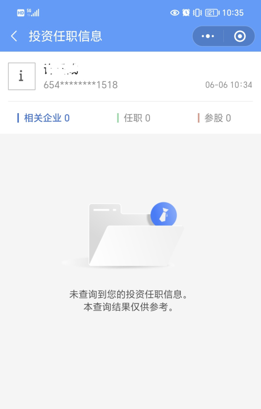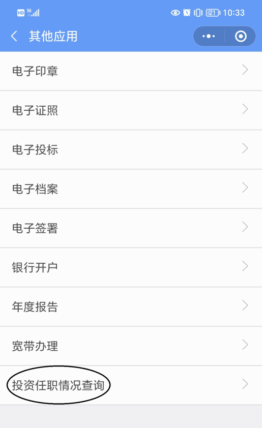 第三步 點(diǎn)擊“零錢通”,可進(jìn)入零錢通詳情頁(yè)。 第四步 點(diǎn)擊右上角“···”,選擇“基金詳情”進(jìn)入基金詳情頁(yè)。 第五步 點(diǎn)擊基金名稱,可查看基金代碼等信息。 04 投資型保險(xiǎn)查詢 第一步 掃碼下載“金事通”APP。 第二步 進(jìn)入“金事通”APP后,點(diǎn)擊右下角“個(gè)人中心”。 第三步 注冊(cè)登錄“金事通”APP。 第四步 授權(quán)登錄后,可在首頁(yè)“投資型保險(xiǎn)”模塊查詢本人持有投資型保險(xiǎn)情況。 第五步 進(jìn)入投資型保險(xiǎn)查詢界面,點(diǎn)擊右下角“查看表單”查看投資型保險(xiǎn)表單詳情,表單詳情格式與“17.本人、配偶、共同生活的子女投資或者以其他方式持有投資型保險(xiǎn)的情況”欄格式一致。 05 投資企業(yè)或擔(dān)任高級(jí)職務(wù)查詢 第一步 微信掃碼進(jìn)入“電子營(yíng)業(yè)執(zhí)照”小程序。 第二步 進(jìn)入后彈出窗口選擇“管理我的執(zhí)照”欄目下的“其他應(yīng)用”。 第三步 進(jìn)入其他應(yīng)用頁(yè)面,選擇“投資任職情況查詢”,按照查詢須知,在早上6點(diǎn)到晚上8點(diǎn)時(shí)間段內(nèi)進(jìn)行查詢。 第四步 進(jìn)入實(shí)名認(rèn)證環(huán)節(jié),輸入本人姓名、身份證號(hào),點(diǎn)擊確認(rèn)。 第五步 使用人臉識(shí)別功能驗(yàn)證本人身份,按照軟件操作識(shí)別身份。 第六步 查看投資任職信息,如有登記信息,則會(huì)顯示相應(yīng)公司名稱,可點(diǎn)擊公司名稱查看相應(yīng)的公司信息。 注意: 配偶、子女及其配偶的從業(yè)、投資企業(yè)情況,可到任職或投資的企業(yè)查詢,或使用“企查查”、“天眼查”、“國(guó)家企業(yè)信用公示系統(tǒng)”(www.gsxt.gov.cn網(wǎng)站)、“國(guó)家企業(yè)信用公示系統(tǒng)”微信小程序等企業(yè)信息查詢APP輔助查詢。 法律服務(wù)機(jī)構(gòu)查詢 登錄“全國(guó)律師誠(chéng)信信息公示平臺(tái)”(https://credit.acla.org.cn/),可查詢律師事務(wù)所和律師相關(guān)信息。 07 投資私募股權(quán)投資基金查詢 第一步 登錄“中國(guó)證券投資基金業(yè)協(xié)會(huì)”官網(wǎng),選擇頁(yè)面中的“私募基金業(yè)務(wù)”。(官網(wǎng):https://www.amac.org.cn) 第二步 進(jìn)入后下拉頁(yè)面,選擇“信息公示”,進(jìn)行相關(guān)查詢。 (轉(zhuǎn)載:智能組工)