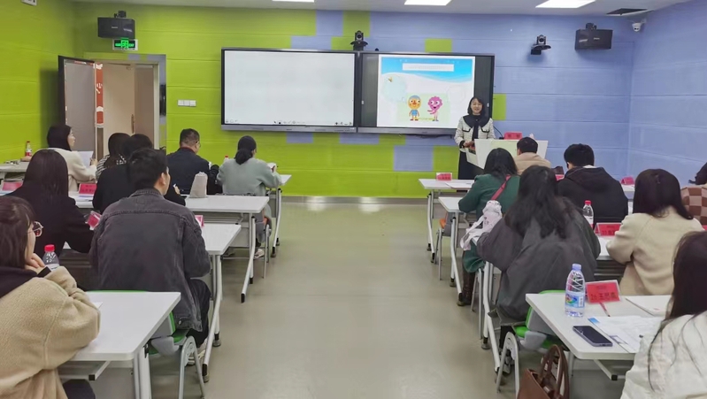 此次培訓(xùn)利用周末開班,共開設(shè)30個(gè)學(xué)時(shí),內(nèi)容涉及英語語音語調(diào)、英語面試技巧、英語口語交際、英語授課能力、跨文化交際等內(nèi)容,通過課堂授課、現(xiàn)場互動(dòng)、案例觀摩以及公開課的形式營造濃厚的英語學(xué)習(xí)氛圍,幫助老師提升雙語教學(xué)能力。
