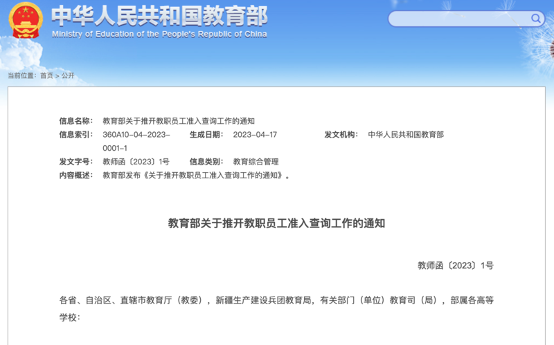 教育部部署教職員工準(zhǔn)入查詢制度: