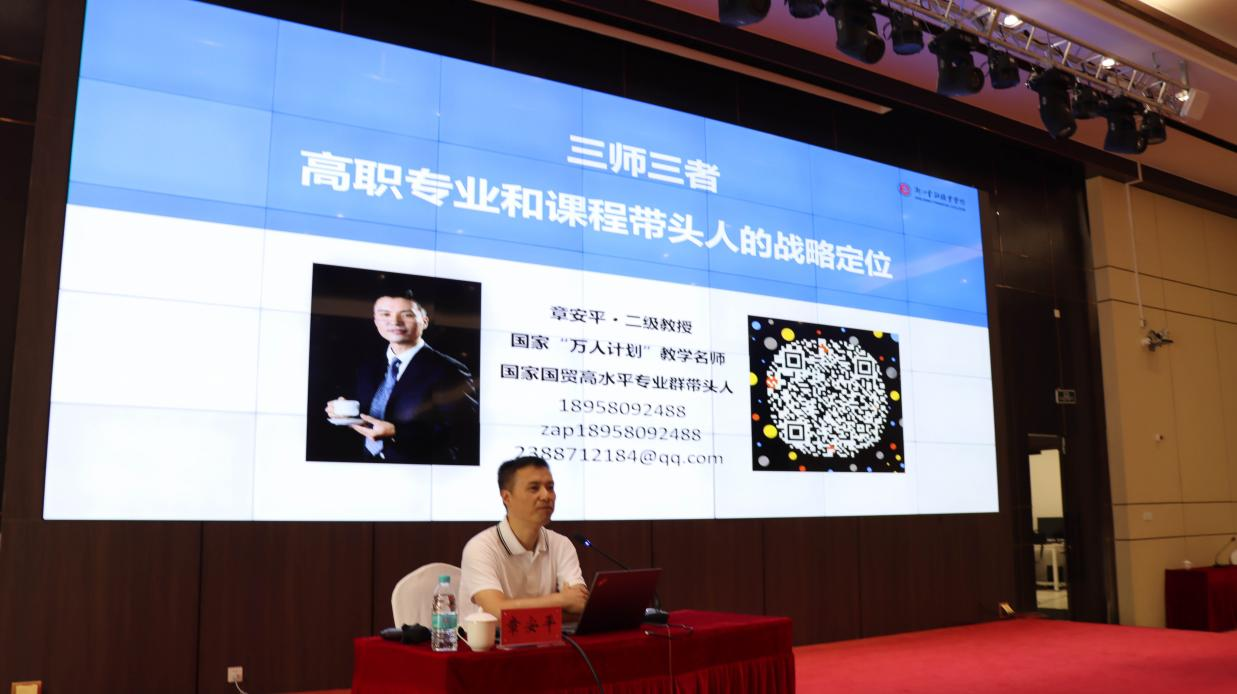 浙江金融職業(yè)學(xué)院阿里巴巴數(shù)字貿(mào)易學(xué)院院長,二級教授,國家“萬人計(jì)劃”教學(xué)名師,國家國貿(mào)高水平專業(yè)群帶頭人章安平以《“三師三者”:高職專業(yè)帶頭人和課程帶頭人的戰(zhàn)略定位》為題,他以國際經(jīng)濟(jì)與貿(mào)易專業(yè)為例,從行業(yè)或職教大環(huán)境、專業(yè)可利用資源、同類學(xué)校同類專業(yè)等方面如何打造頂層設(shè)計(jì)師、資源整合師、創(chuàng)意制造師“三師”,教學(xué)示范者、科研領(lǐng)軍者、服務(wù)引路者“三者”,從專業(yè)(群)帶頭人的戰(zhàn)略定位高度,鼓勵(lì)老師們要苦練苦干,排除苦惱,以樂意樂觀的態(tài)度享受其中的樂趣。