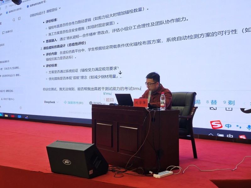 劉學(xué)莘教授圍繞教學(xué)目標(biāo)、學(xué)情分析、教學(xué)問題、課堂創(chuàng)新、考核評價等五個維度深入講解借助DeepSeek等AI技術(shù)優(yōu)化教學(xué)設(shè)計的路徑和經(jīng)驗(yàn),并現(xiàn)場演示如何利用DeepSeek精準(zhǔn)提煉教學(xué)目標(biāo)、構(gòu)建動態(tài)學(xué)情畫像、定位教學(xué)重難點(diǎn)等,現(xiàn)場教師踴躍跟隨操作。