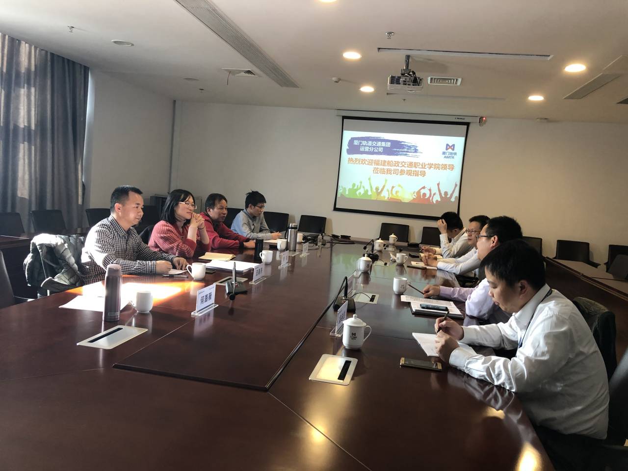 福建船政交通職業(yè)學(xué)院相關(guān)領(lǐng)導(dǎo)及城市軌道工程技術(shù)教研室主任王春茶及骨干教師吳梅容、何潞薇等一行5人于2019年12月13日至15日期間赴廈門(mén)軌道交通集團(tuán)運(yùn)營(yíng)分公司就城市軌道交通工程技術(shù)專業(yè)人才需求調(diào)研、校企合作、訂單生培養(yǎng)等事項(xiàng)開(kāi)展交流與學(xué)習(xí),受到廈門(mén)軌道交通集團(tuán)運(yùn)營(yíng)分公司相關(guān)領(lǐng)導(dǎo)的熱情接見(jiàn),雙方希望能進(jìn)一步深入合作,取得了良好的調(diào)研效果。