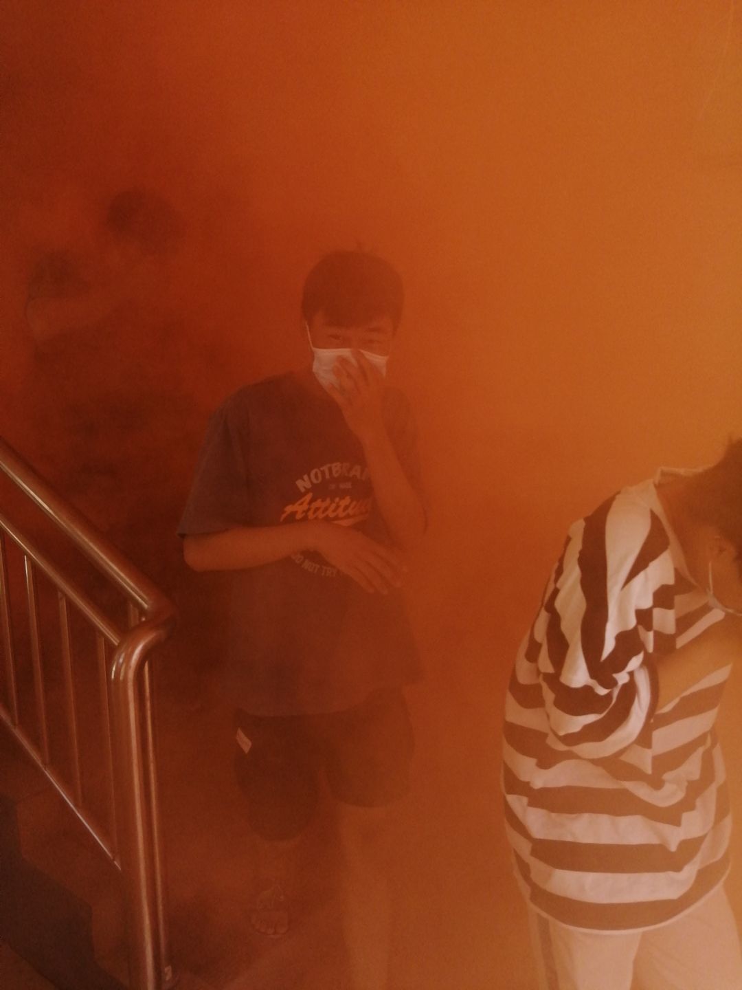 我院于2020年11月13日在長安校區(qū)開展消防應(yīng)急演練,此次消防演練以加強(qiáng)全校師生在消防安全上的自我救助能力,加強(qiáng)生命教育,提高學(xué)生消防安全防范意識。此次演練,我們按照預(yù)定方案進(jìn)行了一次逃生技能演練和消防器材使用演練活動,包括:“模擬火情”:學(xué)生逃生(學(xué)生在安全負(fù)責(zé)教師指導(dǎo)下,用濕毛巾捂住口、鼻,扶著墻壁下樓);講解滅火器知識,點(diǎn)評學(xué)生模擬逃生中存在的問題和注意事項(xiàng);孫基書記總結(jié)了次消防演練活動。本院學(xué)生積極熱情地參加演練,這次演練進(jìn)一步明確了“關(guān)注消防,生命至上”的主題,提高了我院學(xué)生的逃生技能和安全意識。