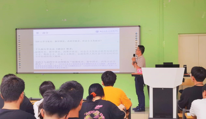 講座中,陳天炎院長(zhǎng)從“為什么學(xué)習(xí)中共黨史、中共黨史的基本脈絡(luò)、如何把握四史邏輯關(guān)系、中共黨史的根本經(jīng)驗(yàn)與規(guī)律”等四個(gè)方面開展了一場(chǎng)深刻、全面、生動(dòng)的講授。陳院長(zhǎng)指出,在全黨開展黨史學(xué)習(xí)教育,是牢記初心使命、推進(jìn)中華民族偉大復(fù)興歷史偉業(yè)的必然要求,是堅(jiān)定信仰信念、在新時(shí)代堅(jiān)持和發(fā)展中國(guó)特色社會(huì)主義的必然要求,是推進(jìn)黨的自我革命、永葆黨的生機(jī)活力的必然要求。陳院長(zhǎng)勉勵(lì)同學(xué)們,要深刻認(rèn)識(shí)到紅色政權(quán)來之不易、新中國(guó)來之不易、中國(guó)特色社會(huì)主義來之不易,學(xué)黨史、強(qiáng)信念、跟黨走,真正做到學(xué)史明理、學(xué)史增信、學(xué)史崇德、學(xué)史力行。