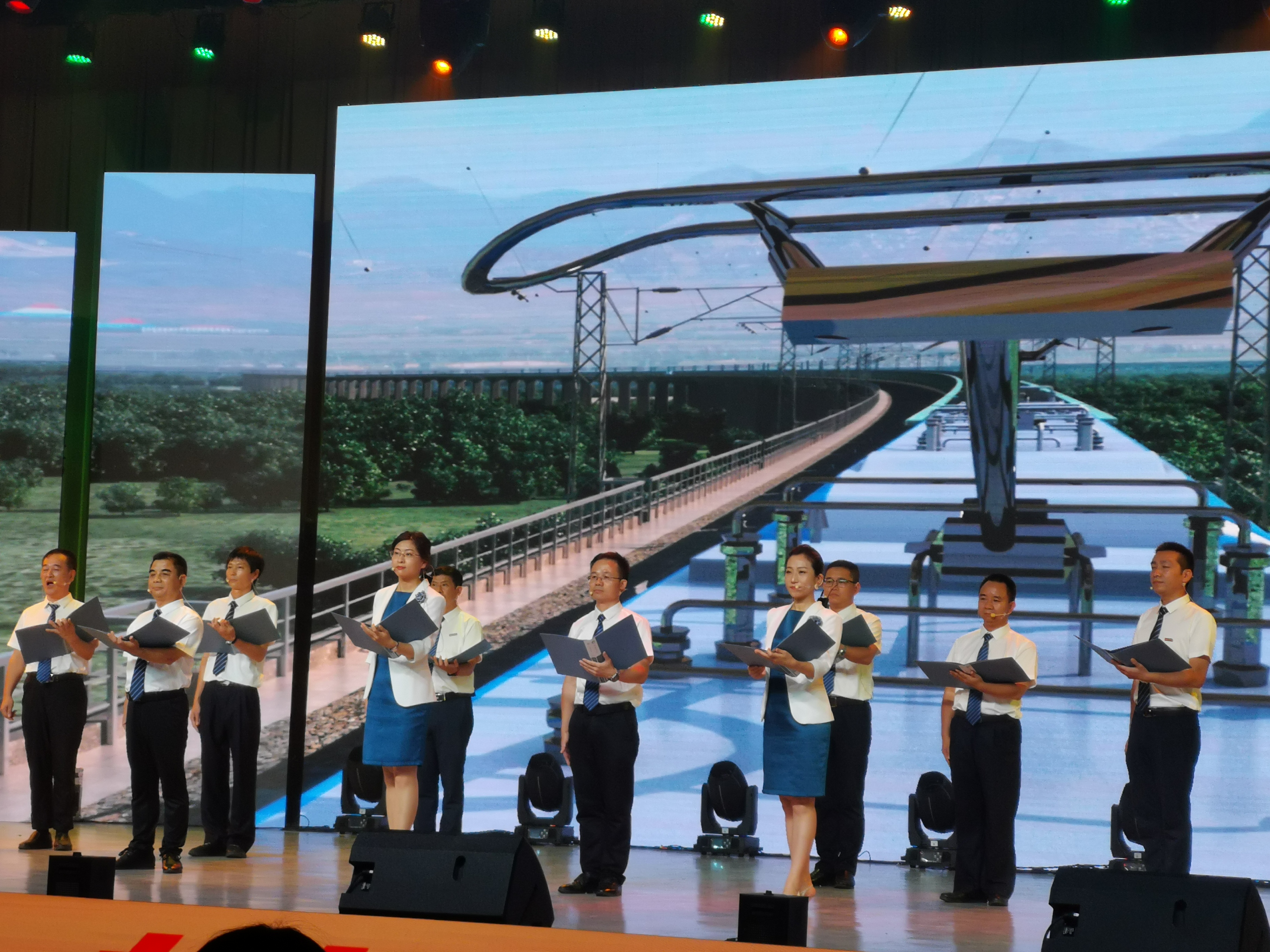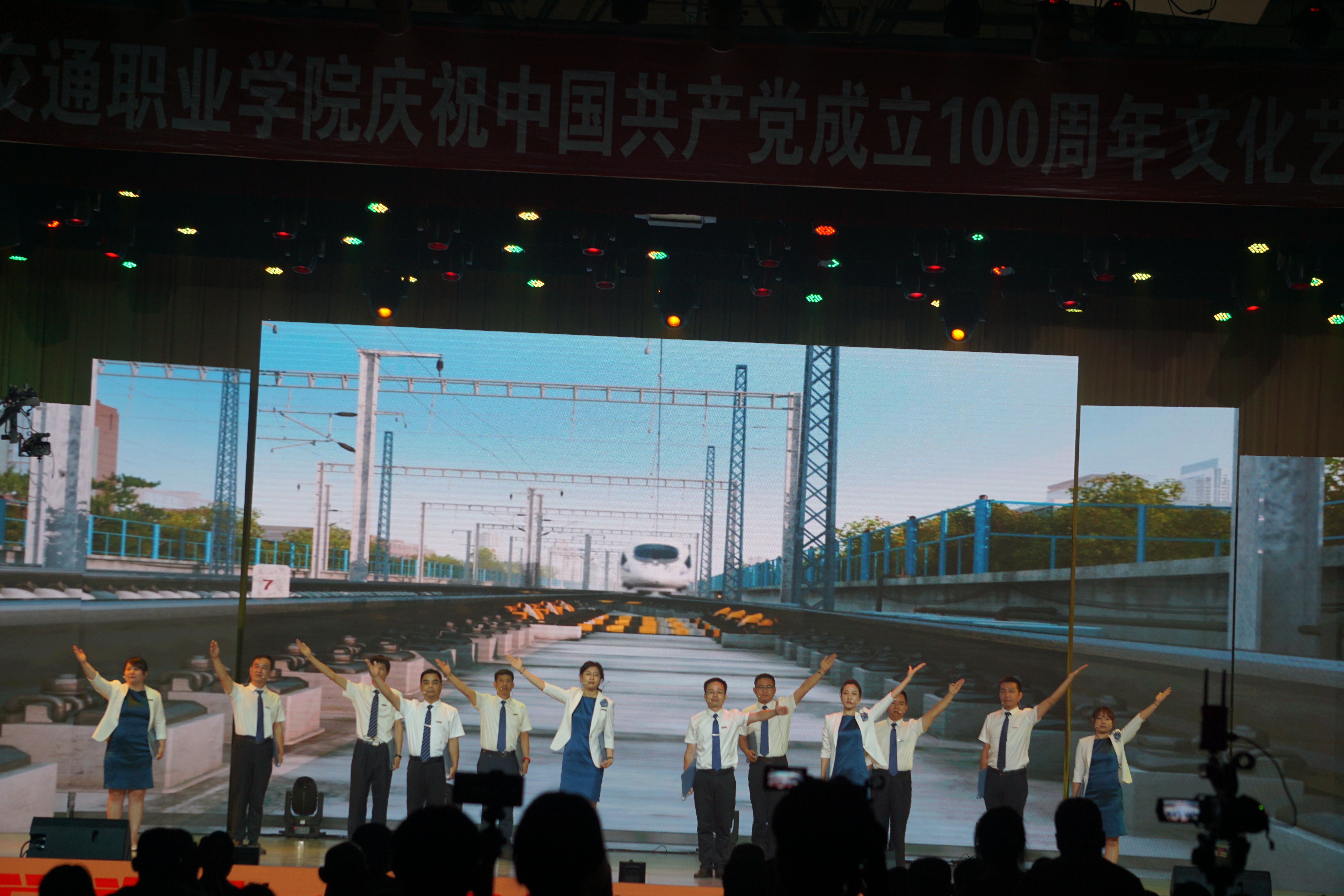 我院選送的節(jié)目詩朗誦《軌道交通譜新篇》參加了此次匯演,作品由孫基書記原創(chuàng),展現(xiàn)了學(xué)院全體師生對(duì)軌道交通事業(yè)的熱愛,抒發(fā)了團(tuán)結(jié)拼搏、積極向上的豪情壯志。隨著背景音樂的響起,由我院教職工代表組成的演出隊(duì)伍排著整齊的步伐登上舞臺(tái),表演開始激情澎湃的詩句從演出人員口中朗朗誦來,那堅(jiān)定的眼神、鏗鏘有力的聲調(diào),無不體現(xiàn)出我院教職工的驕傲與自信。演出結(jié)束場(chǎng)內(nèi)掌聲此起彼伏,觀眾臉上的贊許是對(duì)演員們盡心盡力演出最好的回報(bào)。
