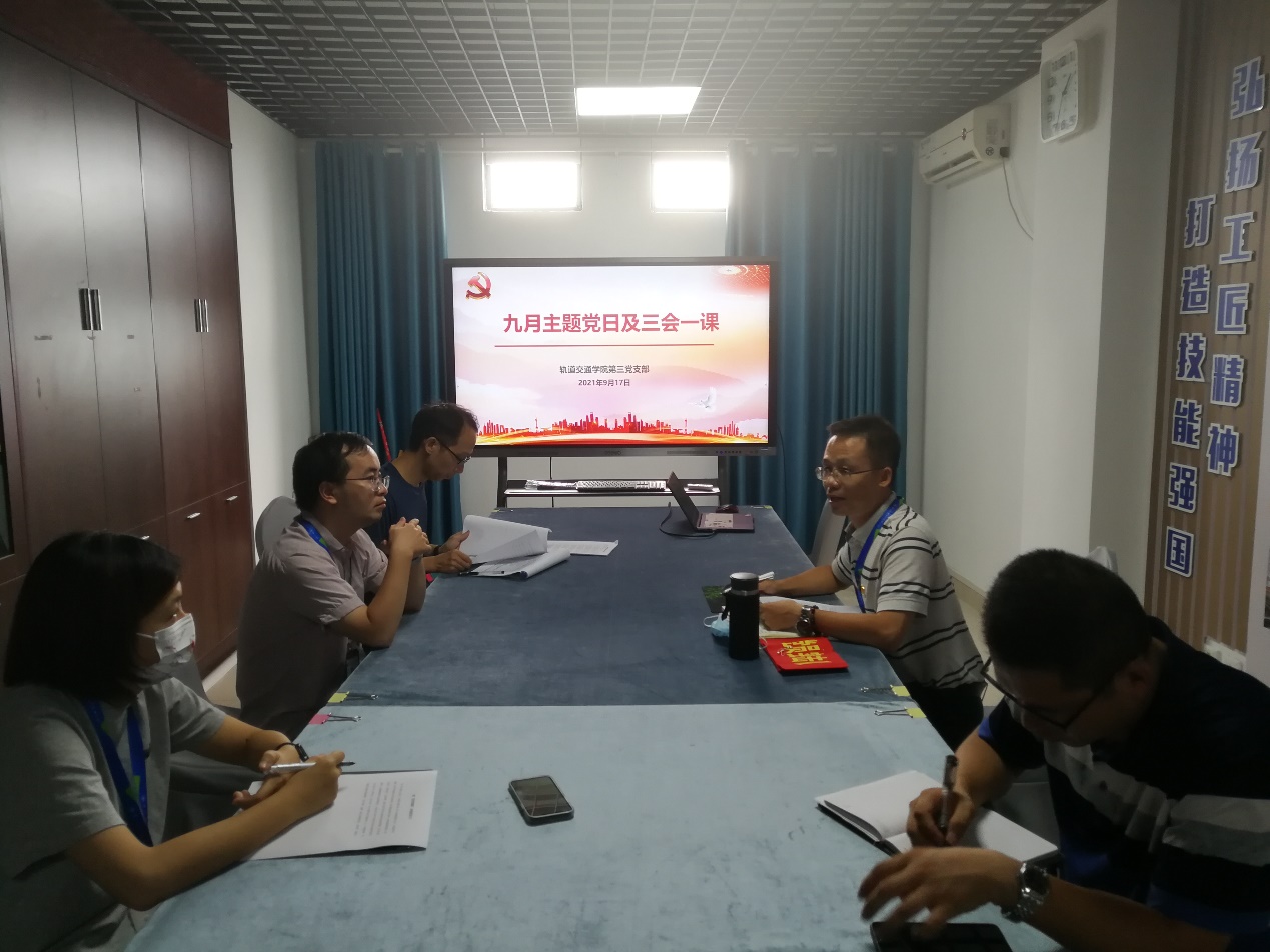 2021年9月17日下午,軌道交通學院第三黨支部在學院校企合作室召開9月專題學習會。會議由支部書記陳天炎主持,支部全體黨員參加會議。