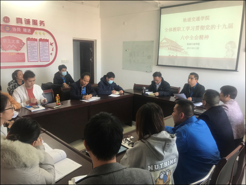 軌道交通學院院長陳天炎:回望來時路,看清腳下路,才能更好地堅定前行。黨的十九屆六中全會的召開是對黨百年取得的重大成就和歷史經(jīng)驗進行系統(tǒng)總結(jié),《決議》引發(fā)我院黨員干部的極大共鳴,激蕩人心催人奮進。我們要更加堅定的貫徹黨的教育方針,無愧使命擔當,不負偉大理想,搶抓職業(yè)教育機遇與挑戰(zhàn),踐行好立德樹人初心和為黨育人、為國育才使命,進一步發(fā)揮學院專業(yè)、人才和資源優(yōu)勢,在加快職業(yè)教育現(xiàn)代化建設(shè)的征程中書寫更加出彩的篇章。