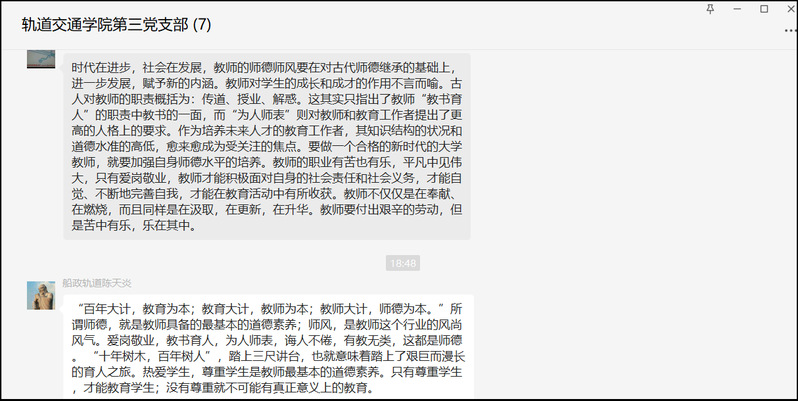 全體黨員還集中學(xué)習(xí)了《教育部公開曝光第九批7起違反教師職業(yè)行為十項(xiàng)準(zhǔn)則典型案例》,觀看師德師風(fēng)警示教育專題片,并開展交流討論。