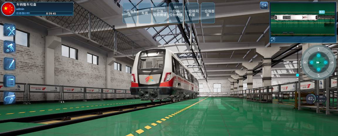 本次競賽組織是基于因特網(wǎng)搭建的競賽平臺,基于三維虛擬仿真技術(shù)構(gòu)建的車輛檢修作業(yè)環(huán)境,選手需要通過計算機在三維軟件中進行在線作業(yè)考核。競賽內(nèi)容參照第 46 屆世界技能大賽軌道車輛技術(shù)項目技術(shù)文件。競賽內(nèi)容包括四個模塊。其中模塊 A 為受電弓的檢修與控制,模塊 B 為客室車門的安裝與調(diào)試,模塊 C 為車輛轉(zhuǎn)向架檢修,模塊 D為車輛整車故障排查與處理。