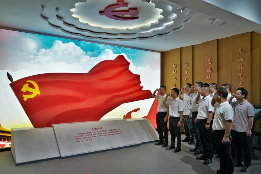 在黨日活動中,雙方黨員共同參觀了吳孟超院士館。在講解員的帶領(lǐng)下,黨員們回顧了吳孟超院士勵志報國、勇攀高峰、大醫(yī)仁心、甘為人梯、回報鄉(xiāng)梓的光輝歷程,深刻體會到吳孟超院士“愛黨、愛國、愛民”的“三愛”情懷,和“勇闖禁區(qū)、勇于創(chuàng)新、勇往直前、勇攀高峰”的“四勇”精神。黨員們面對黨旗重溫入黨誓詞,激昂的宣誓聲傳達出身為共產(chǎn)黨員的責(zé)任感和使命感,更加堅定了不忘初心再出發(fā)、牢記使命勇?lián)數(shù)男判暮蜎Q心。