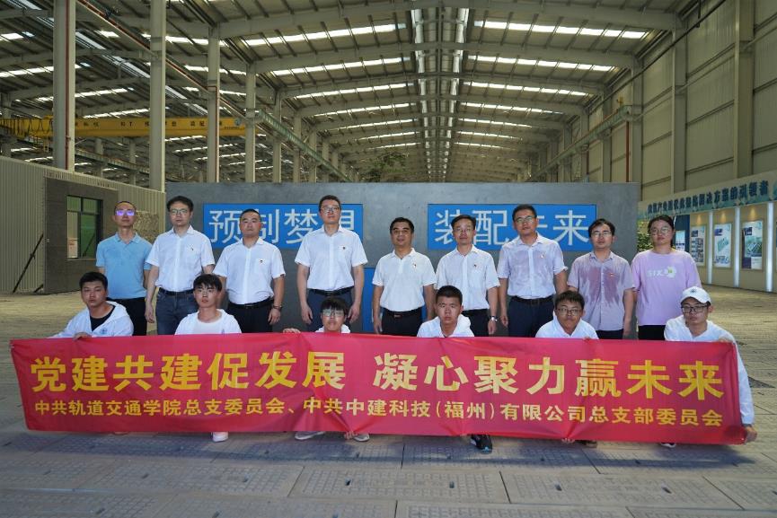 為喜迎黨的二十大勝利召開,落實新時代基層黨建工作要求,充分發(fā)揮黨建引領(lǐng)作用,進一步深化產(chǎn)教融合,推進校企合作,實現(xiàn)黨建與業(yè)務(wù)工作“雙提升”,2022年7月21日,軌道交通學(xué)院黨總支赴閩清縣與中建科技(福州)有限公司黨總支(以下簡稱“中建科技黨總支”)結(jié)對共建聯(lián)合開展“黨建共建促發(fā)展 凝心聚力贏未來”主題黨日活動暨校外實訓(xùn)基地揭牌儀式。