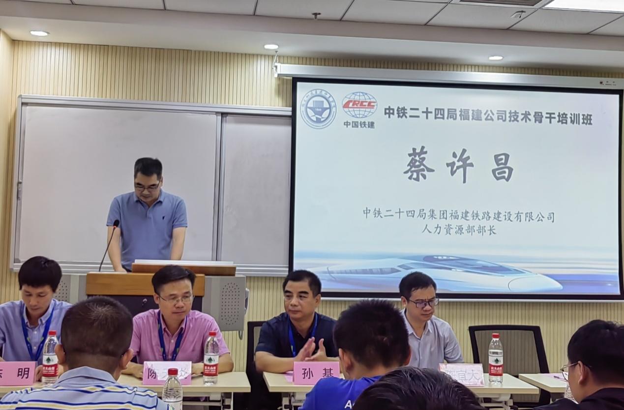 隨后,中鐵二十四局集團(tuán)福建公司人力資源部部長(zhǎng)蔡許昌代表中鐵二十四局集團(tuán)向培訓(xùn)班的順利開班表示熱烈的祝賀,同時(shí)介紹了中鐵二十四局集團(tuán)福建公司的相關(guān)情況,并要求學(xué)員在培訓(xùn)期間安排好各項(xiàng)工作,學(xué)習(xí)好培訓(xùn)內(nèi)容,掌握好各項(xiàng)技能,務(wù)必珍惜此次培訓(xùn)機(jī)會(huì),順利通過此次技術(shù)骨干培訓(xùn)班的考核。