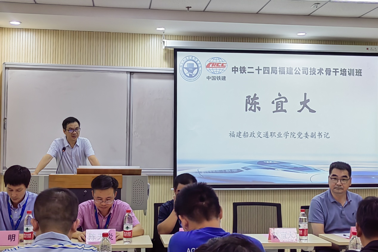 2022年8月22日上午,由福建船政交通職業(yè)學(xué)院主辦的2022年中鐵二十四局集團(tuán)福建公司技術(shù)骨干培訓(xùn)班順利開班。學(xué)校黨委副書記陳宜大、軌道交通學(xué)院領(lǐng)導(dǎo)班子、中鐵二十四局集團(tuán)福建公司人力資源部部長(zhǎng)蔡許昌、技術(shù)中心常務(wù)副主任陳希茂、人力資源主管陳曉鷗等出席儀式,學(xué)院骨干教師、班主任及培訓(xùn)班全體學(xué)員參加儀式,開班儀式由軌道交通學(xué)院副院長(zhǎng)陳明主持。