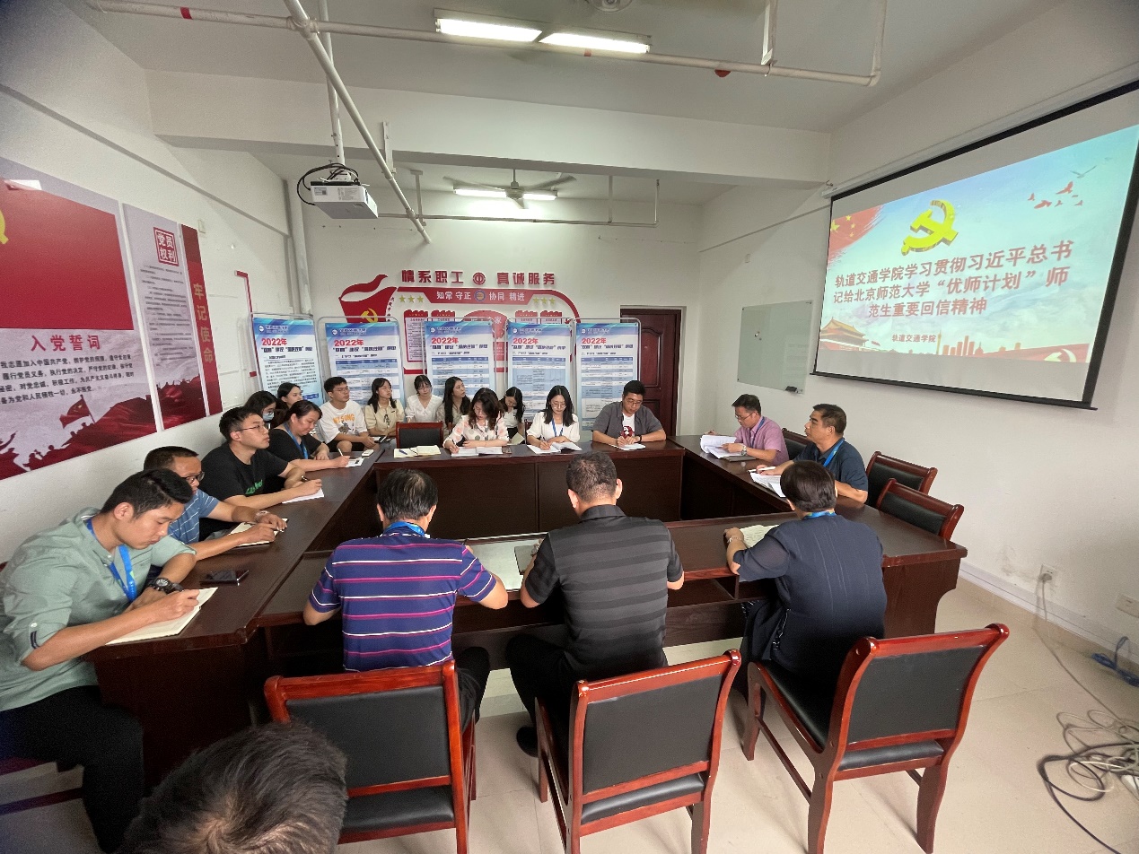 為認(rèn)真學(xué)習(xí)貫徹習(xí)近平總書記的重要回信內(nèi)容,全面落實立德樹人根本任務(wù),持續(xù)加強師德師風(fēng)建設(shè),以實際行動迎接黨的二十大勝利召開。2022年9月23日上午,軌道交通學(xué)院在第一會議室組織學(xué)習(xí)了習(xí)近平總書記給北京師范大學(xué)“優(yōu)師計劃”師范生重要回信精神,并一同觀看了《習(xí)近平的教師情》專題片。學(xué)院黨政領(lǐng)導(dǎo)班子、全院教職工參加會議,會議由孫基書記主持。