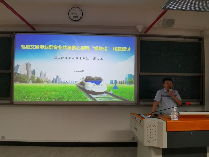 為提升專業(yè)建設(shè)水平,規(guī)范人才培養(yǎng)方案,推動(dòng)課堂教學(xué)改革。9月28日下午,軌道交通學(xué)院邀請湖南鐵道職業(yè)技術(shù)學(xué)院專業(yè)主任、專業(yè)帶頭人傅宗純教授在南區(qū)實(shí)訓(xùn)大樓南樓709教室做題為《軌道交通專業(yè)群專業(yè)共享核心課程“模塊化”構(gòu)建探討》講座,我院全體教師參加。