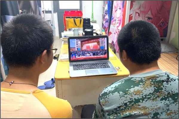學(xué)院教職工在南區(qū)新實(shí)訓(xùn)大樓南樓709教室觀看直播