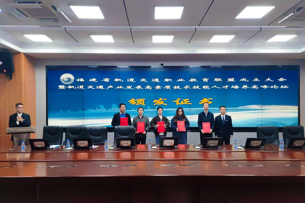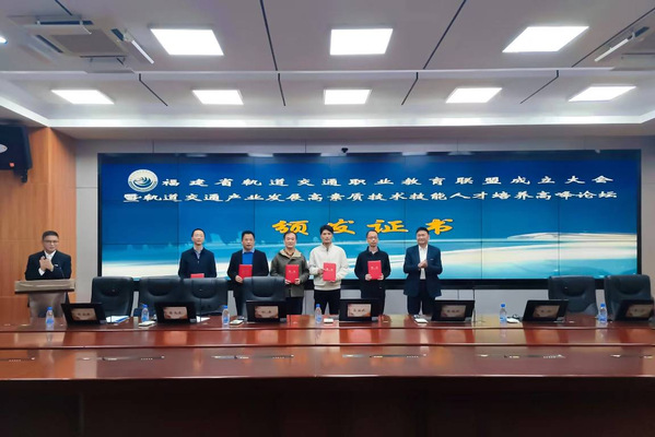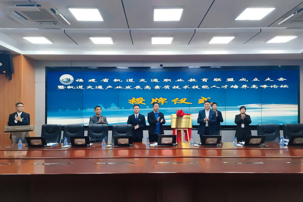 與會領(lǐng)導(dǎo)共同為福建省軌道交通職業(yè)教育聯(lián)盟揭牌。
