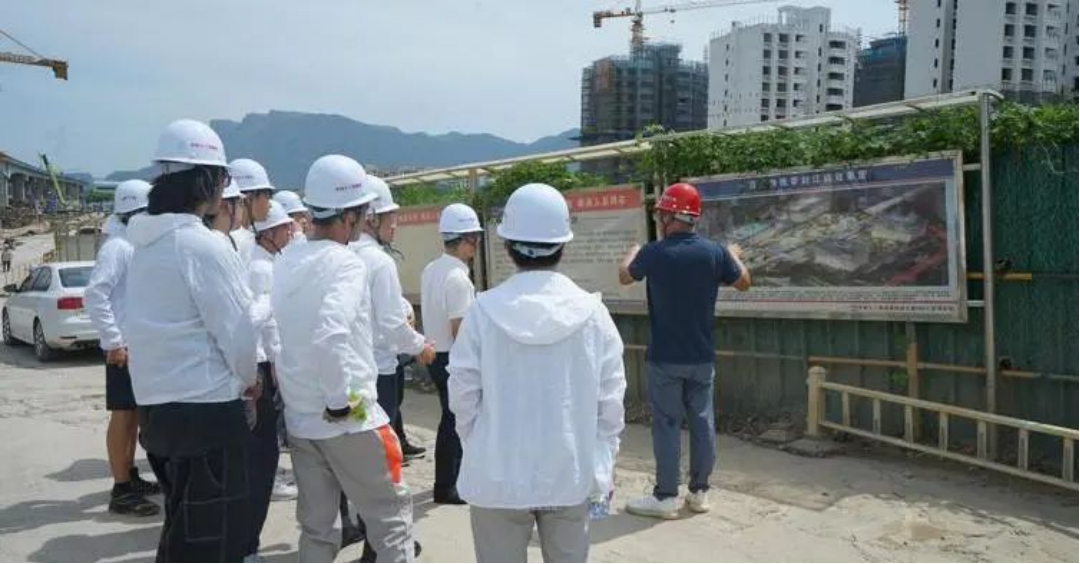 實踐團來到福州“帝封江”地鐵站施工現(xiàn)場進行實地參觀考察。工程師為實踐團隊員介紹了工程概況、施工重難點和工程進度情況。“帝封江”地鐵站為地下二層/地上三層高架雙島式結(jié)構(gòu),投入運營后將成為福州地鐵全線首座三線換乘車站。
