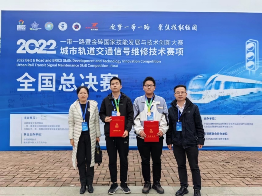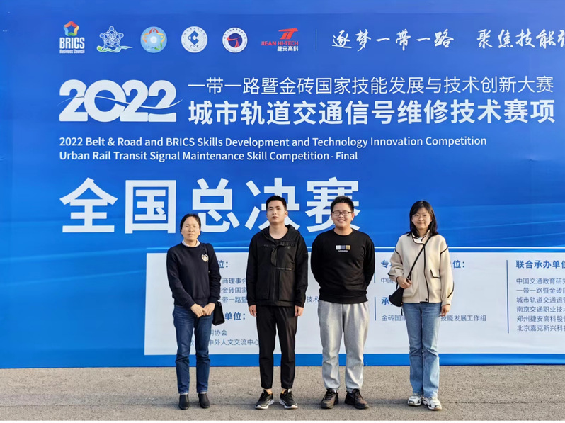 2023年4月21日-25日,2022-2023“一帶一路”暨金磚國家技能發(fā)展與技術(shù)創(chuàng)新大賽城市軌道交通信號維修技術(shù)賽項全國總決賽在南京交通職業(yè)技術(shù)學(xué)院展開激烈角逐。軌道交通學(xué)院派出陳偉、林達銀兩位同學(xué)代表學(xué)校參賽并獲得全國三等獎的好成績。