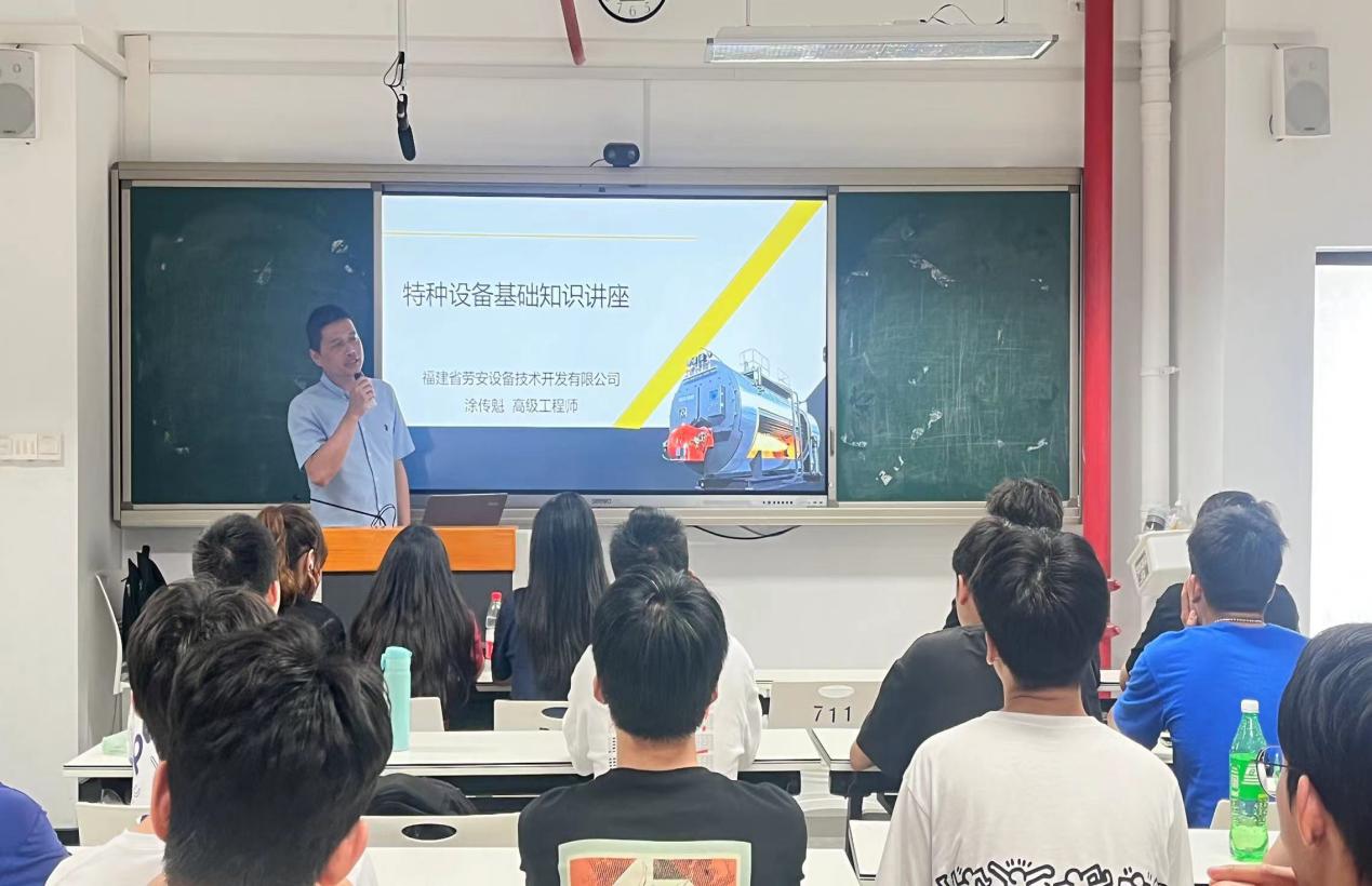 為貫徹落實《教育部等十部門關于做好2023年職業(yè)教育活動周相關工作的通知》要求,大力弘揚勞動光榮、技能寶貴、創(chuàng)造偉大的時代風尚,積極營造人人學習技能、人人享有技能的技能型社會氛圍,根據(jù)“軌道交通學院2023年職業(yè)教育活動周”安排,5月18日下午,軌道交通學院特邀福建省勞安設備技術開發(fā)有限公司檢驗部部長涂傳魁高級工程師蒞院開展《軌道交通特種設備基礎知識》主題講座。