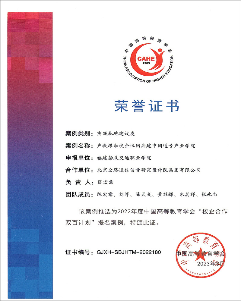 近日,中國高等教育學會公布了2022年度“校企合作 雙百計劃”(下稱“雙百計劃”)典型案例提名名單,共推選產(chǎn)生359項提名典型案例。其中,我院報送的《產(chǎn)教深融校企協(xié)同共建中國通號產(chǎn)業(yè)學院》案例成功入選。