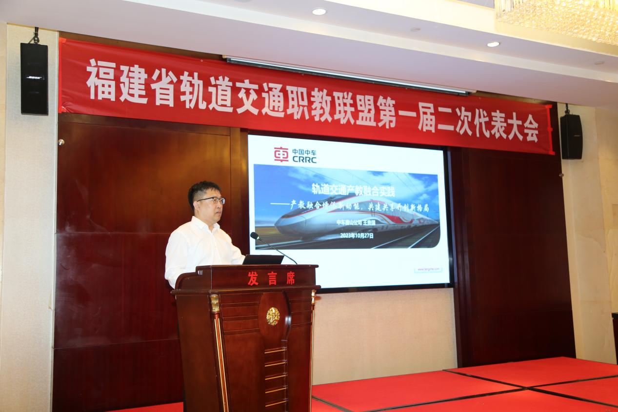 本次大會由福建省軌道交通職業(yè)教育聯(lián)盟、福建船政交通職業(yè)學(xué)院主辦,泉州中車唐車軌道車輛有限公司協(xié)辦。會議開始,中車唐山機(jī)車車輛有限公司紀(jì)委書記周新遠(yuǎn)致辭,表示中車唐山機(jī)車車輛有限公司將繼續(xù)從發(fā)揮產(chǎn)業(yè)工人隊伍優(yōu)勢,發(fā)揮數(shù)字化、創(chuàng)新轉(zhuǎn)型優(yōu)勢,發(fā)揮創(chuàng)新平臺優(yōu)勢,發(fā)揮產(chǎn)業(yè)鏈鏈長優(yōu)勢四方面,推動職業(yè)教育與軌道交通裝備產(chǎn)業(yè)高度匹配、高效互動,共促福建省軌道交通事業(yè)的創(chuàng)新發(fā)展。