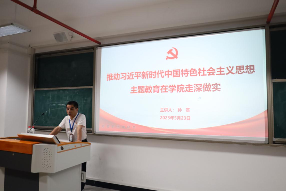 為扎實(shí)推進(jìn)學(xué)習(xí)貫徹習(xí)近平新時(shí)代中國特色社會(huì)主義思想主題教育,持續(xù)深入推動(dòng)黨的二十大精神學(xué)深、學(xué)透、學(xué)實(shí),2023年5月23日,軌道交通學(xué)院黨總支書記孫基以《推動(dòng)學(xué)習(xí)貫徹習(xí)近平新時(shí)代中國特色社會(huì)主義思想主題教育在學(xué)院走深做實(shí)》為題,為軌道交通學(xué)院入黨積極分子和發(fā)展對(duì)象進(jìn)行主題教育專題宣講。