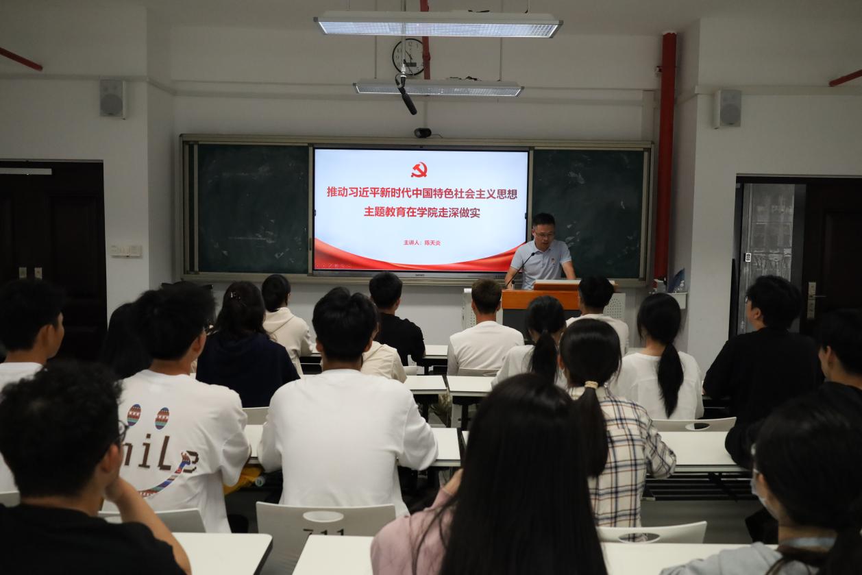 為扎實(shí)推進(jìn)學(xué)習(xí)貫徹習(xí)近平新時(shí)代中國(guó)特色社會(huì)主義思想主題教育,持續(xù)深入推動(dòng)黨的二十大精神學(xué)深、學(xué)透、學(xué)實(shí),2023年8月9日軌道交通學(xué)院院長(zhǎng)陳天炎以《推動(dòng)學(xué)習(xí)貫徹習(xí)近平新時(shí)代中國(guó)特色社會(huì)主義思想主題教育在學(xué)院走深做實(shí)》為題,為軌道交通學(xué)院21級(jí)入黨積極分子和發(fā)展對(duì)象進(jìn)行主題教育專題宣講。