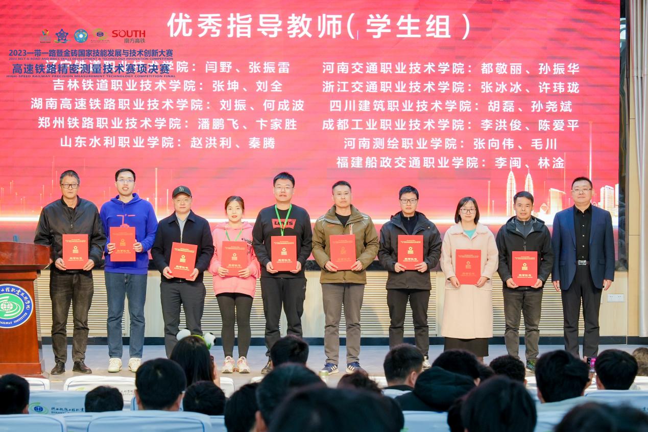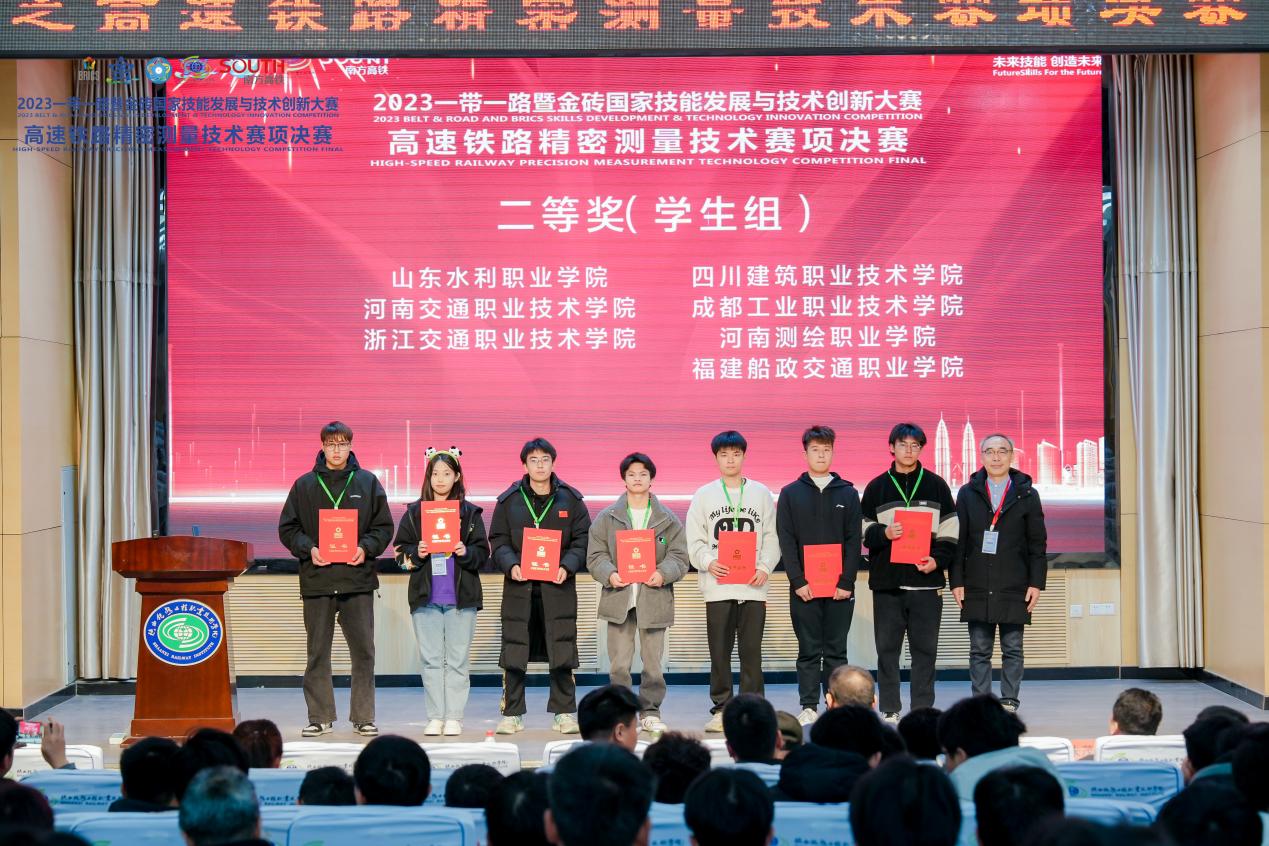 11月17日—20日,2023一帶一路暨金磚國(guó)家技能發(fā)展與技術(shù)創(chuàng)新大賽“高速鐵路精密測(cè)量技術(shù)”賽項(xiàng)全國(guó)總決賽在陜西鐵路職業(yè)技術(shù)學(xué)院舉辦。來自國(guó)內(nèi)外的39支參賽隊(duì)、156名參賽選手參加比賽。經(jīng)過激烈角逐,福建船政交通職業(yè)學(xué)院軌道交通學(xué)院簡(jiǎn)瑞杰、陳俊榮、馬濤、向鵬鵬四位同學(xué)榮獲團(tuán)體賽二等獎(jiǎng);指導(dǎo)老師李閩、林淦獲得“優(yōu)秀指導(dǎo)教師”榮譽(yù)稱號(hào),福建船政交通職業(yè)學(xué)院獲“優(yōu)秀組織獎(jiǎng)”。