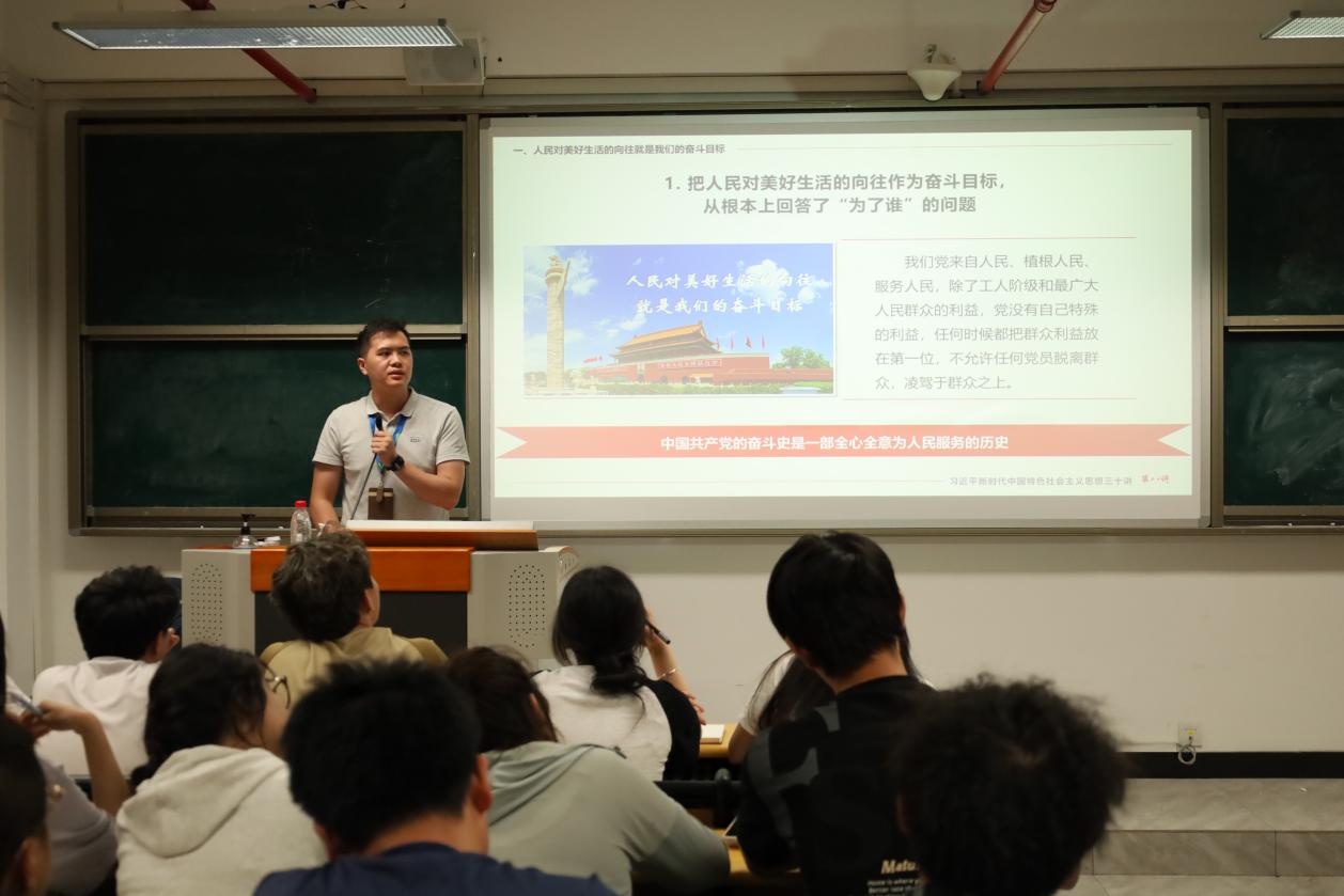 青春逢盛世,奮斗正當(dāng)時。為深入學(xué)習(xí)貫徹習(xí)近平新時代中國特色社會主義思想,學(xué)深悟透習(xí)近平總書記關(guān)于青年工作的重要思想,引領(lǐng)廣大同學(xué)堅定不移聽黨話、跟黨走,2023年5月26日,軌道交通學(xué)院輔導(dǎo)員鄭華輝以“學(xué)習(xí)黨的二十大,做有理想、敢擔(dān)當(dāng)、能吃苦,肯奮斗的新時代好青年”為主題,為軌道交通學(xué)院22級城市軌道機(jī)電、工程專業(yè)入黨積極分子與發(fā)展對象進(jìn)行主題教育專題宣講。