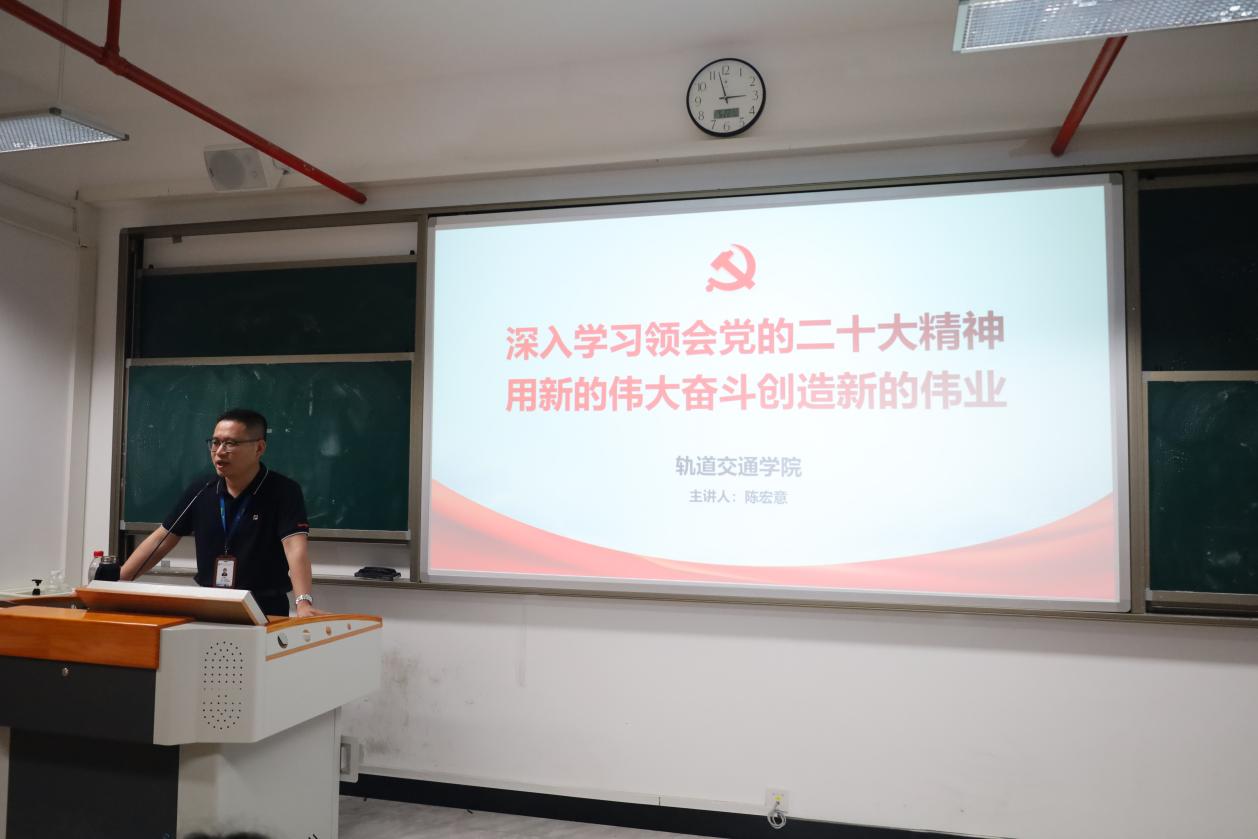 為深入學(xué)習(xí)貫徹習(xí)近平新時代中國特色社會主義思想,落實黨的二十大精神,明確黨和國家的奮斗方向,領(lǐng)悟關(guān)于黨和國家事業(yè)發(fā)展的大政方針和戰(zhàn)略部署的歷史邏輯、理論邏輯、實踐邏輯,2023年5月22日,軌道交通學(xué)院副院長陳宏意開展了以“深入學(xué)習(xí)領(lǐng)會黨的二十大精神,用新的偉大奮斗精神創(chuàng)造新的偉業(yè)”為主題的教育宣講會。