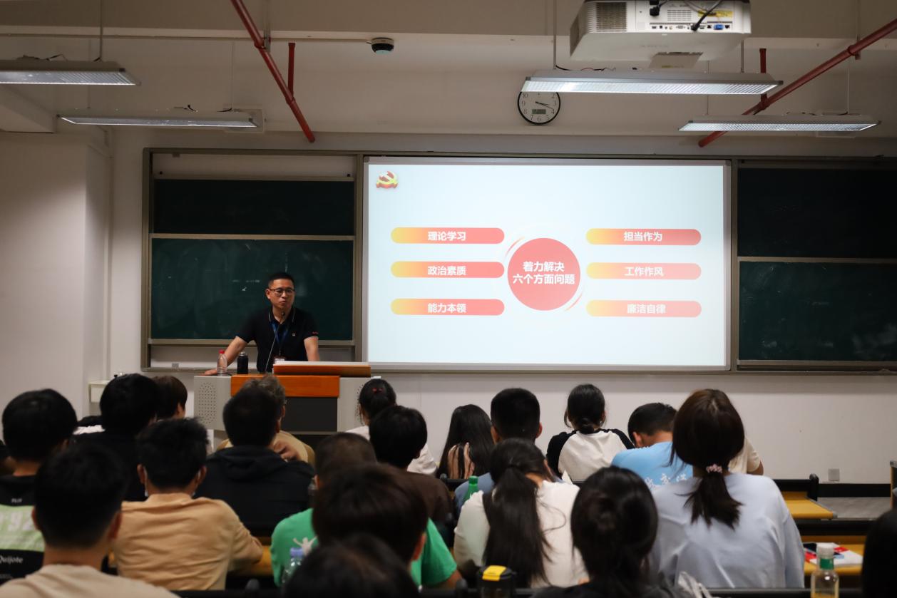陳宏意副院長向同學(xué)們闡述本次推進(jìn)學(xué)習(xí)貫徹習(xí)近平新時代中國特色社會主義思想主題教育要著力解決的6個方面的突出問題:1.理論學(xué)習(xí)上,學(xué)習(xí)不深入不系統(tǒng),運用理論指導(dǎo)實踐的能力不足。2.政治素質(zhì)上,政治判斷力和執(zhí)行力偏弱,貫徹落實黨中央決策存在差距。3.能力本領(lǐng)上,推動高質(zhì)量發(fā)展和應(yīng)對風(fēng)險的本領(lǐng)不足。4.擔(dān)當(dāng)作為上,干事創(chuàng)業(yè)激情不足,存在厭戰(zhàn)情緒和等待心理。5.工作作風(fēng)上,形式主義官僚主義問題突出,與群眾聯(lián)系不夠。6.廉潔自律上,違反紀(jì)律紀(jì)法現(xiàn)象時有發(fā)生。要堅持針對性和導(dǎo)向性,以問題為導(dǎo)向推進(jìn)主題教育,以實際效果檢驗學(xué)習(xí)成效。