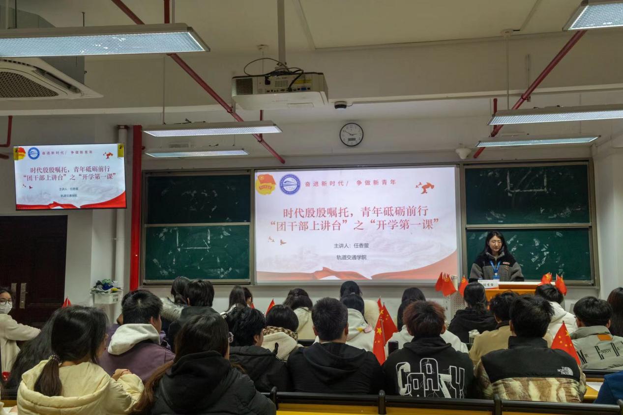 為學(xué)習(xí)貫徹習(xí)近平新時(shí)代中國特色社會主義思想,重視青年、培養(yǎng)青年、愛護(hù)青年、矚望青年,始終貫穿習(xí)近平總書記的“青年觀”,軌道交通學(xué)院于2023年12月開展“團(tuán)干部上講臺”之“開學(xué)第一課”活動,本次活動以“時(shí)代殷殷囑托,青年砥礪前行”為題,由軌道交通學(xué)院分團(tuán)委書記林欣欣、分團(tuán)委副書記鄭華輝、分團(tuán)委組織委員張毅、分團(tuán)委宣傳委員任香螢分別為我院全體新生上團(tuán)課。