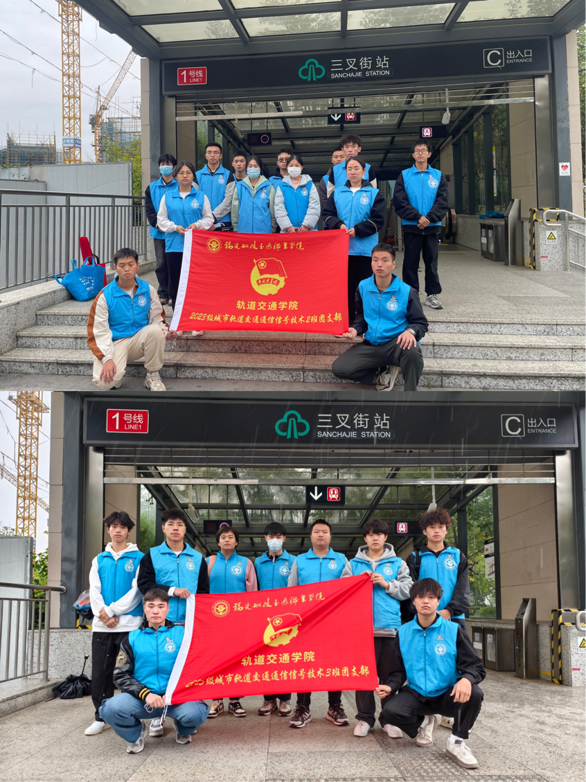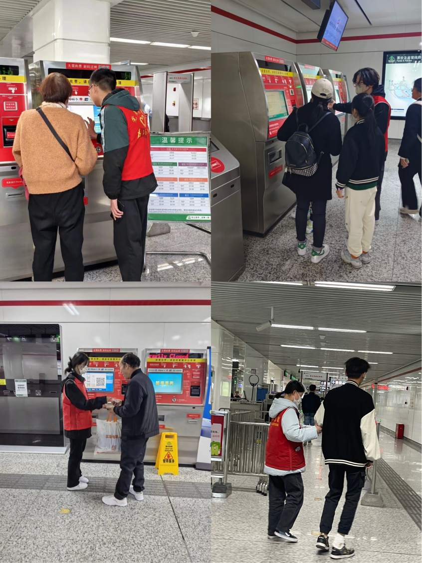 我院志愿者在福州各個地鐵站進行旅客疏導服務活動。主要幫助地鐵站疏導行進的旅客、維持站內(nèi)秩序,幫助不熟悉候車室位置的旅客找到正確的地點。