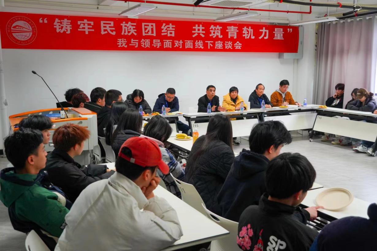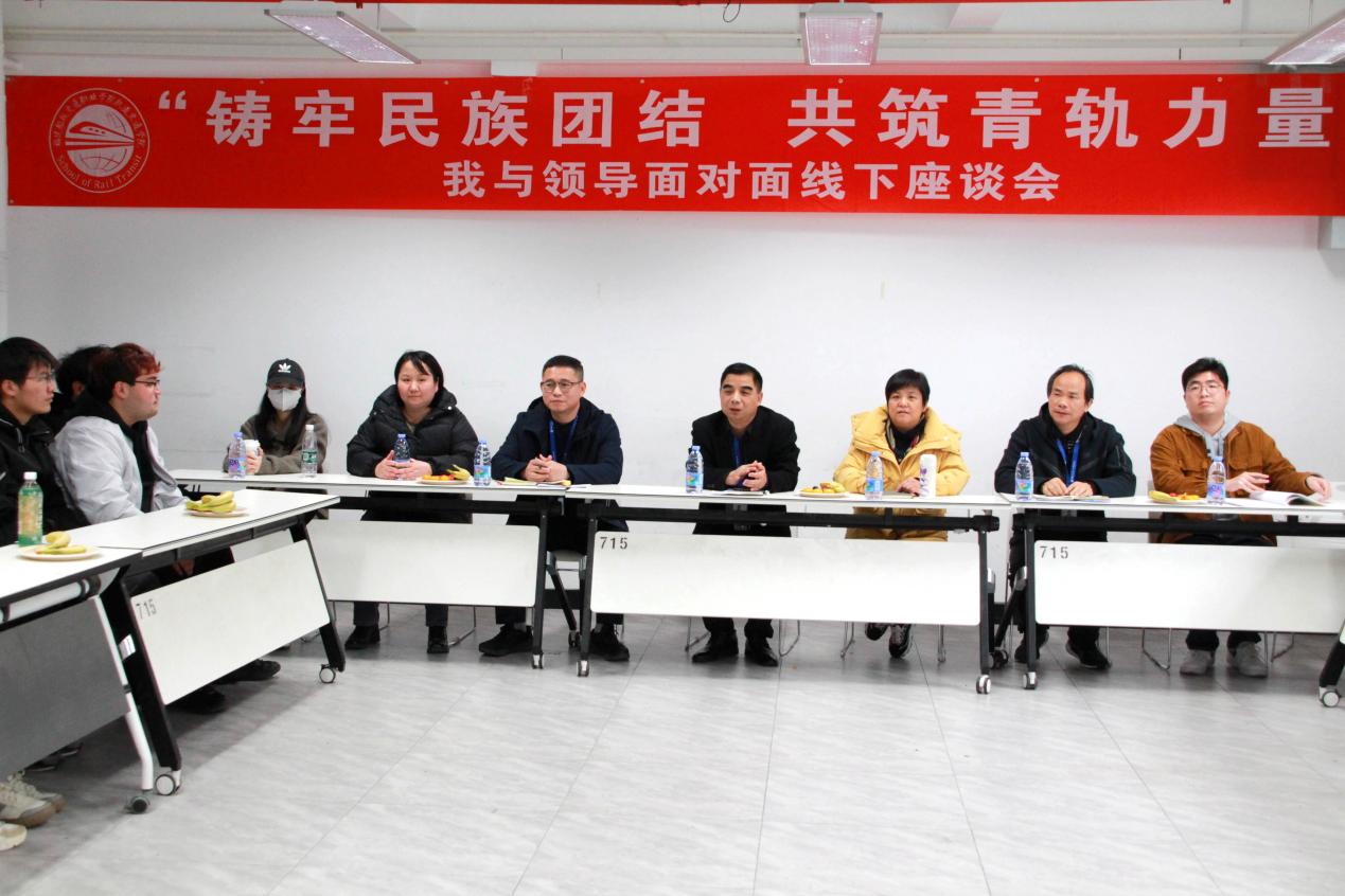 為引導(dǎo)學(xué)生樹立正確的人生觀、價(jià)值觀、世界觀,加強(qiáng)愛國(guó)主義教育,鑄牢中華民族共同體意識(shí),軌道交通學(xué)院利用春季開學(xué)的重要契機(jī),于2024年3月13日開展“鑄牢民族團(tuán)結(jié),共筑青軌力量”我和領(lǐng)導(dǎo)面對(duì)面線下座談會(huì)。參加本次座談會(huì)的有軌道交通學(xué)院黨總支書記孫基,副院長(zhǎng)陳宏意,副院長(zhǎng)季芳,組織員劉明,輔導(dǎo)員黃華梅、繆宇彬、陳凌靜以及各少數(shù)民族同學(xué)代表。