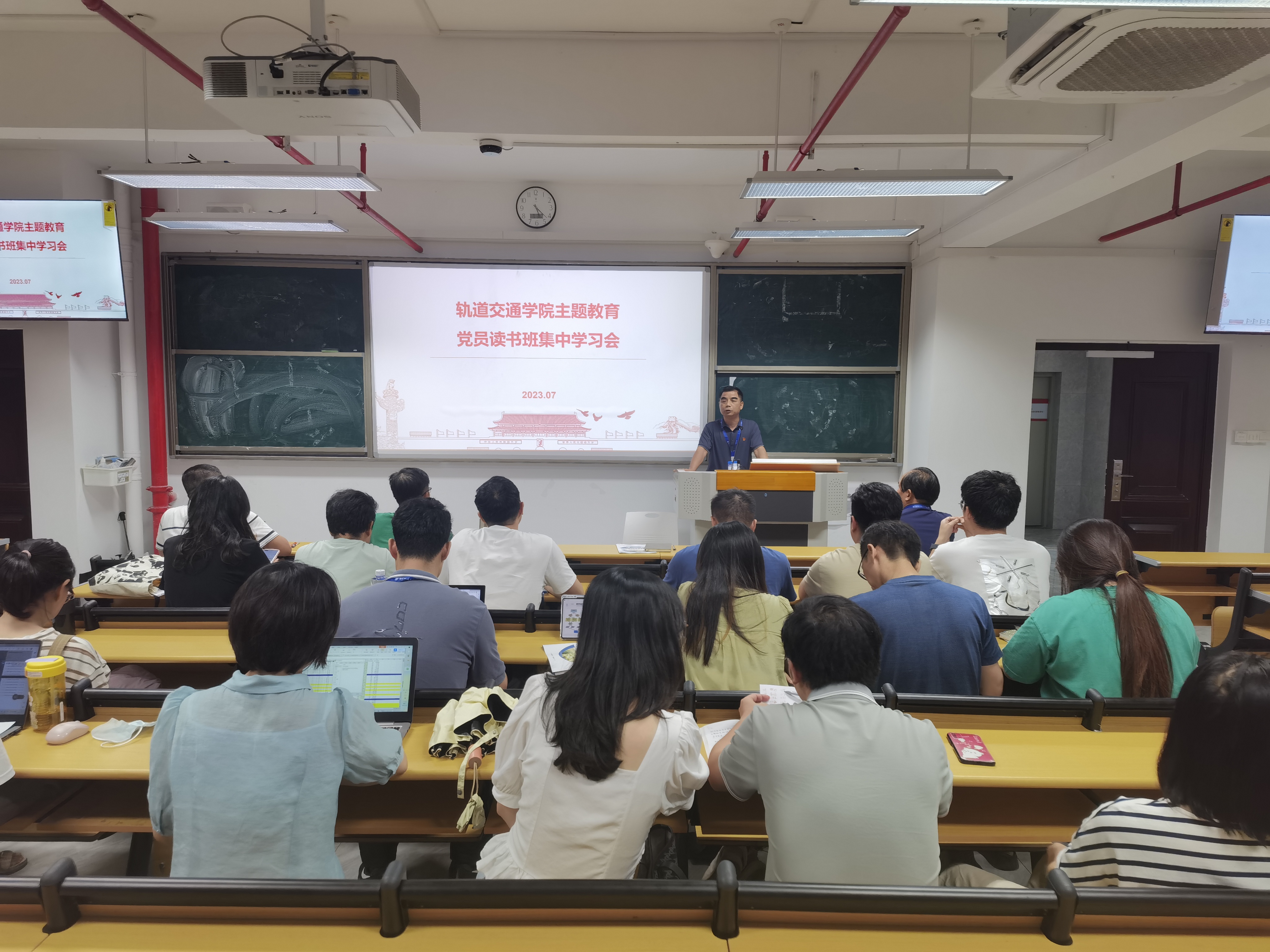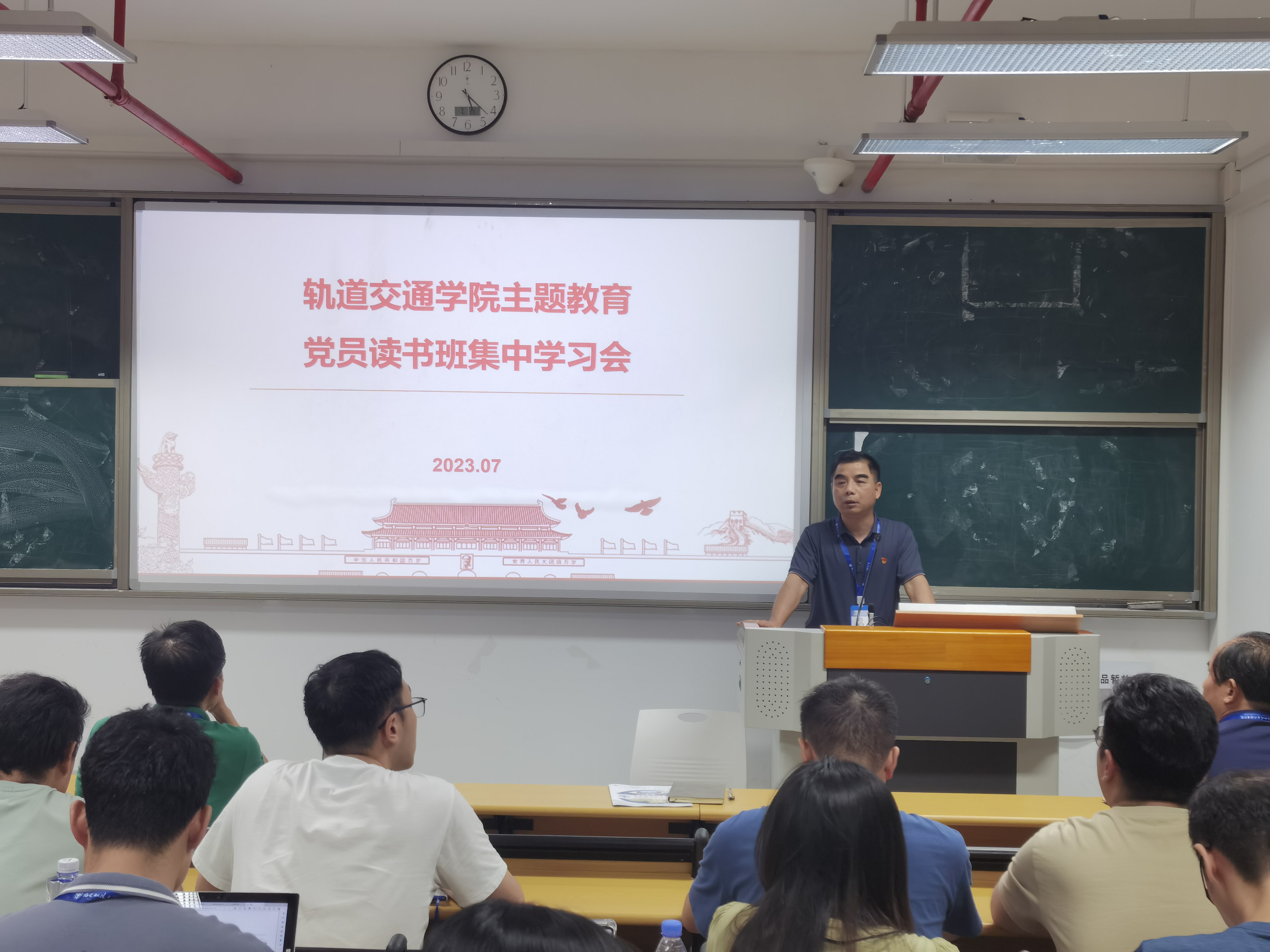 2023年7月3日,軌道交通學院黨總支組織全體教職工集中學習《習近平新時代中國特色社會主義思想的世界觀和方法論專題摘編》,本次會議由軌道交通學院黨總支書記孫基主持。