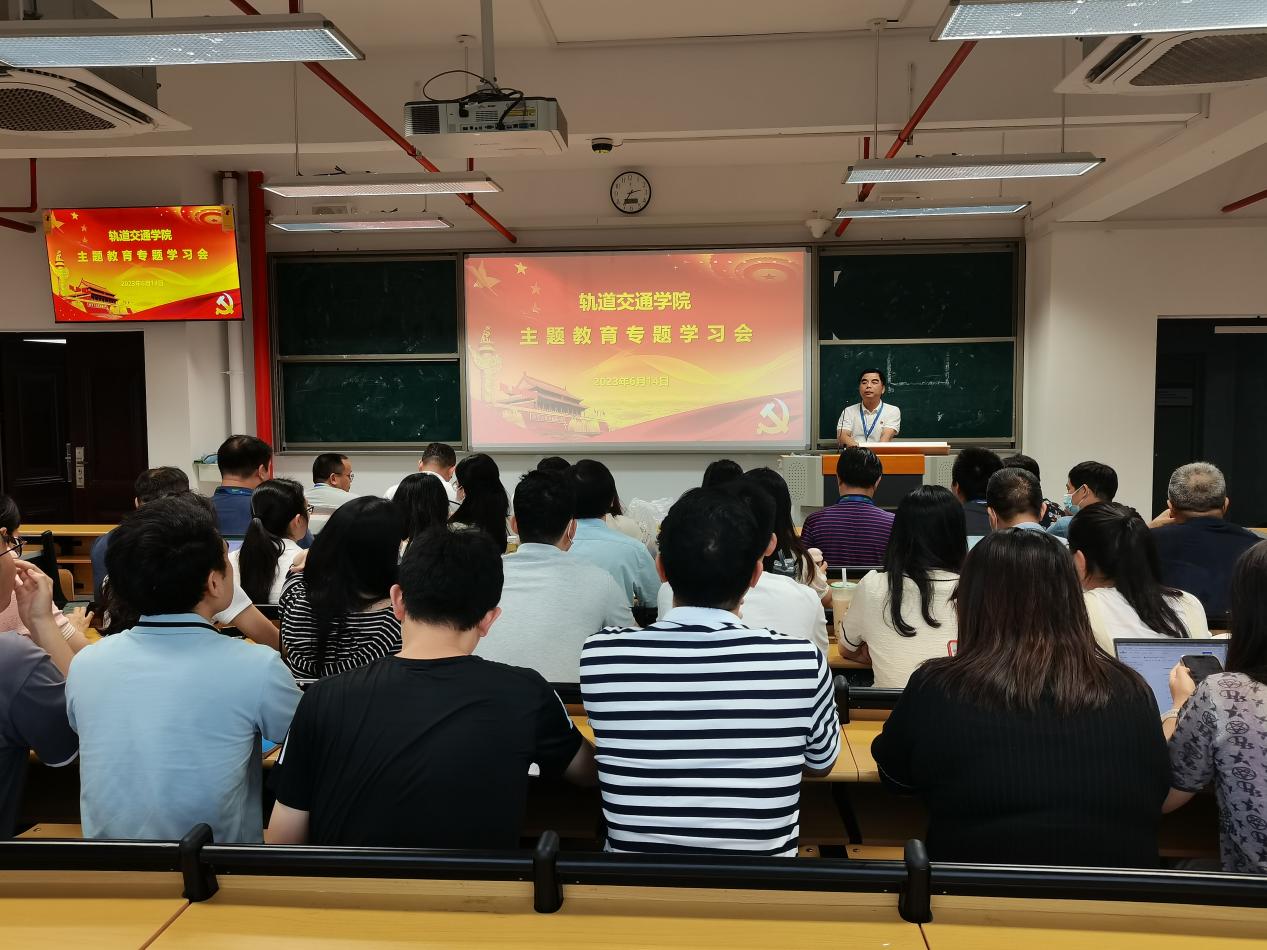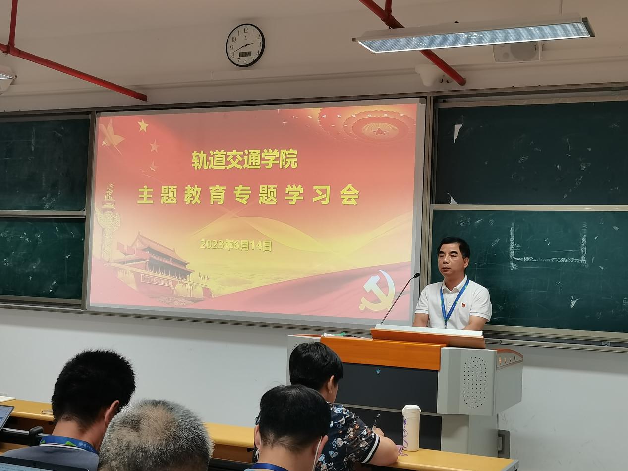 為持續(xù)深入開展學(xué)習(xí)貫徹習(xí)近平新時代中國特色社會主義思想主題教育,2023年6月14日,軌道交通學(xué)院召開主題教育專題學(xué)習(xí)會。本次專題學(xué)習(xí)會由軌道交通學(xué)院黨總支書記孫基領(lǐng)學(xué)。