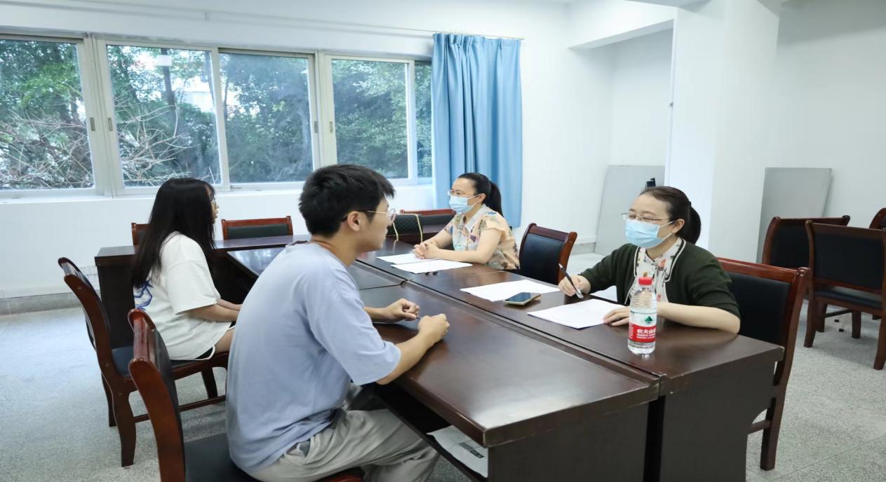 會后,同學(xué)們積極參與面試。