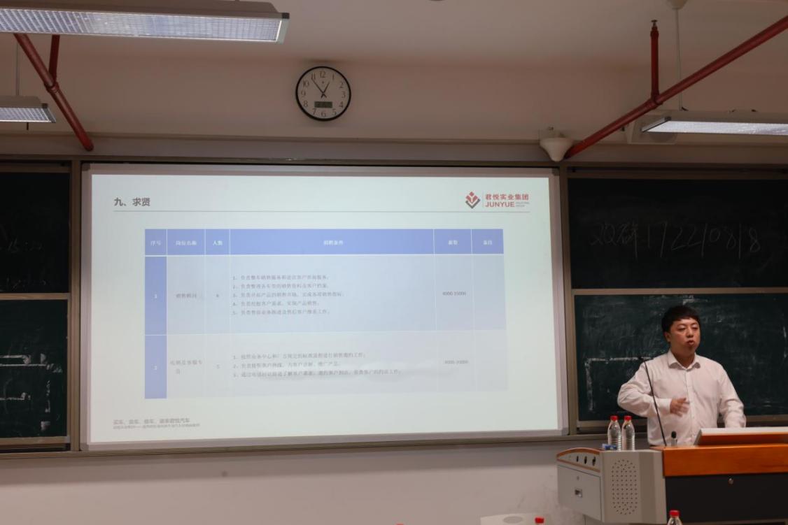2024年5月7日,福州市君悅佳奧汽車(chē)銷(xiāo)售有限公司的負(fù)責(zé)人蒞臨我校軌道交通學(xué)院,針對(duì)于軌道交通學(xué)院畢業(yè)生畢業(yè)后的就業(yè)問(wèn)題在實(shí)訓(xùn)樓809教室展開(kāi)了專(zhuān)項(xiàng)宣講會(huì),拓寬我院畢業(yè)生就業(yè)渠道,有效的選擇優(yōu)質(zhì)的就業(yè)崗位,進(jìn)一步推動(dòng)和提升學(xué)生就業(yè)質(zhì)量。