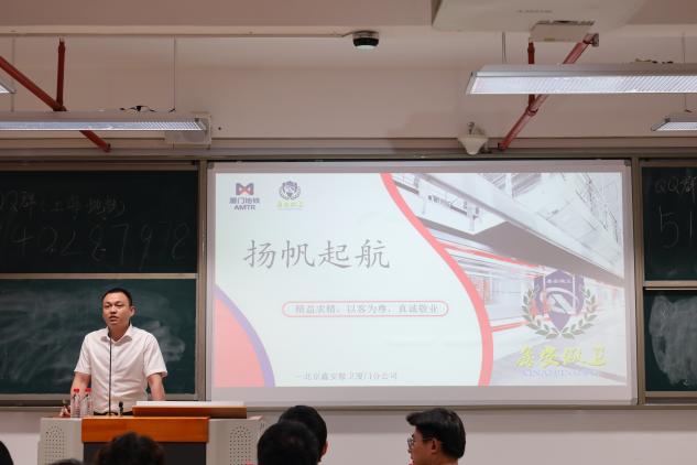 為拓寬我校畢業(yè)生的就業(yè)渠道,增加我校畢業(yè)生的就業(yè)機會。2024年5月9日,福建船政交通職業(yè)學院軌道交通學院于藝新樓607教室順利召開了鑫安儆衛(wèi)的企業(yè)宣講會。為展現(xiàn)出對我院的重視,鑫安儆衛(wèi)的董事長馬春妹女士親臨宣講會的現(xiàn)場會,同時也帶來了他們公司的四位精英。同學們對他們的到來展現(xiàn)出萬分的熱情。