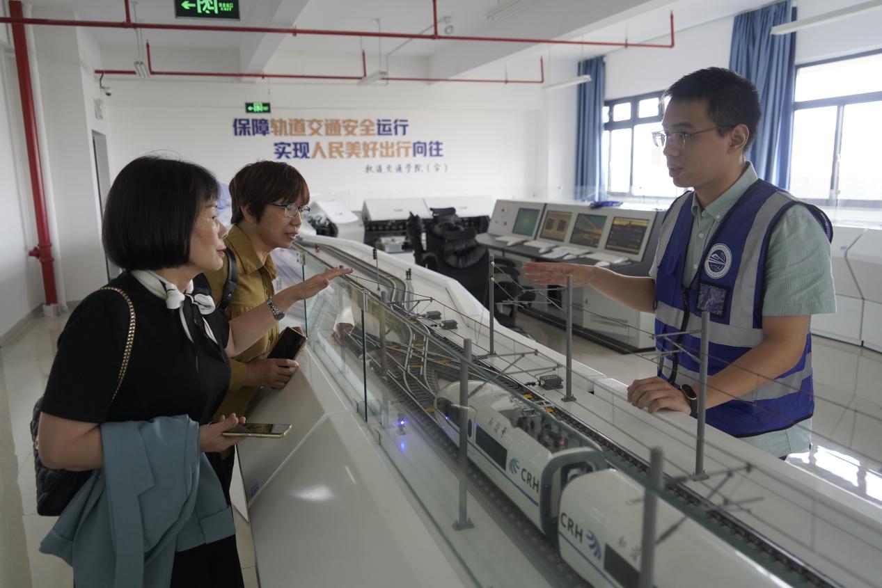 老同志們一踏入軌道交通學(xué)院,便感受到了濃厚的學(xué)術(shù)氛圍和現(xiàn)代氣息。在軌道實(shí)訓(xùn)室,他們被一系列先進(jìn)的專業(yè)實(shí)驗(yàn)實(shí)訓(xùn)設(shè)施深深吸引。這些現(xiàn)代化的教學(xué)設(shè)備,展現(xiàn)了軌道交通專業(yè)的前沿發(fā)展。