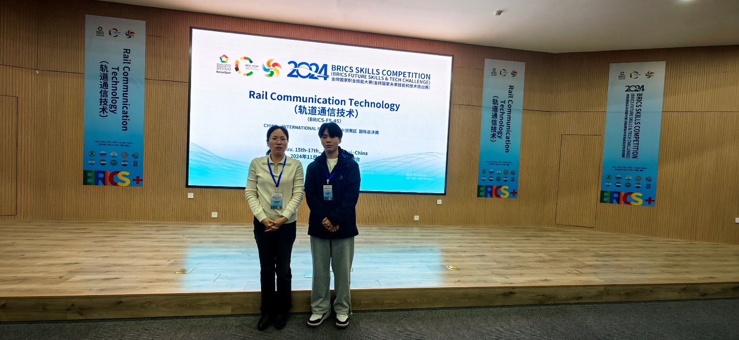 2024年11月15日-17日, 2024金磚國家職業(yè)技能大賽軌道通信技術(shù)賽項國際總決賽在煙臺工程職業(yè)技術(shù)學(xué)院展開激烈角逐。我院沈俊慧老師精心指導(dǎo)的學(xué)生唐家煇代表福建船政交通職業(yè)學(xué)院參賽并獲得國際總決賽三等獎。
