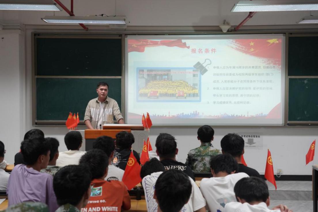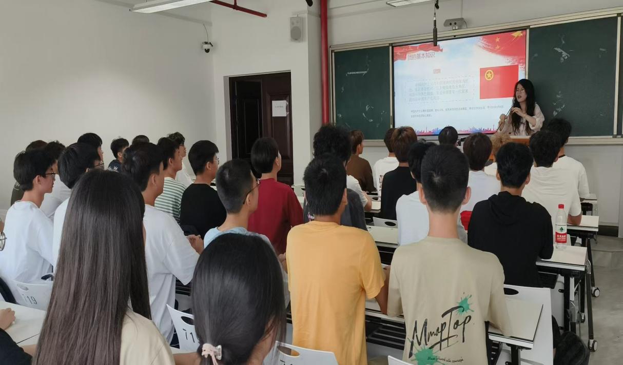 團(tuán)委副書記鄭華輝詳細(xì)闡述了共青團(tuán)的性質(zhì)、團(tuán)旗、團(tuán)徽、團(tuán)歌以及共青團(tuán)的發(fā)展史。他充滿了對青年學(xué)生的殷切期望,希望新時(shí)代的中國青年能以實(shí)現(xiàn)中華民族偉大復(fù)興為己任,不負(fù)時(shí)代以及黨和人民的期望。在青春的賽道上,如乘風(fēng)破浪般奮力奔跑,勇往直前。