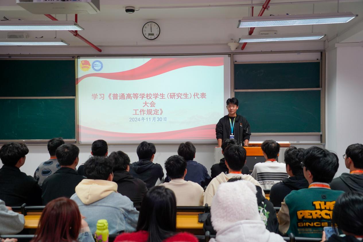 學(xué)院學(xué)生會(huì)主席團(tuán)成員李嘉旭領(lǐng)讀《普通高等學(xué)校學(xué)生(研究生)代表大會(huì)工作規(guī)定》《關(guān)于推動(dòng)高校學(xué)生會(huì)(研究生會(huì))深化改革的若干意見》《關(guān)于學(xué)聯(lián)學(xué)生會(huì)工作人員改進(jìn)作風(fēng)服務(wù)同學(xué)的若干規(guī)定》等相關(guān)文件,文件中提出鞏固深化新時(shí)代高校學(xué)生會(huì)(研究生會(huì))改革和建設(shè)的建議,提倡學(xué)生會(huì)應(yīng)把牢政治方向,加強(qiáng)領(lǐng)導(dǎo)指導(dǎo),當(dāng)好橋梁紐帶,抓實(shí)隊(duì)伍建設(shè),提升服務(wù)實(shí)效,堅(jiān)守初心,消除不良風(fēng)氣。