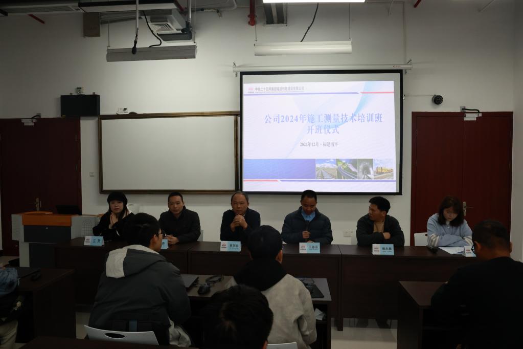 2024年12月3日上午,由福建船政交通職業(yè)學(xué)院軌道交通學(xué)院主辦的2024年中鐵二十四局集團(tuán)福建公司測量基礎(chǔ)技術(shù)培訓(xùn)班順利開班。中鐵二十四局集團(tuán)福建公司副總經(jīng)理、總工程師林劍忠,測繪中心部長曾志鑫,黨委干部部(人力資源部)副部長王燁,黨委工作部副部長、團(tuán)委書記張茜以及學(xué)院軌道工程技術(shù)教研室主任王春茶出席開班儀式,班主任江旋老師及培訓(xùn)班全體學(xué)員參會(huì)。