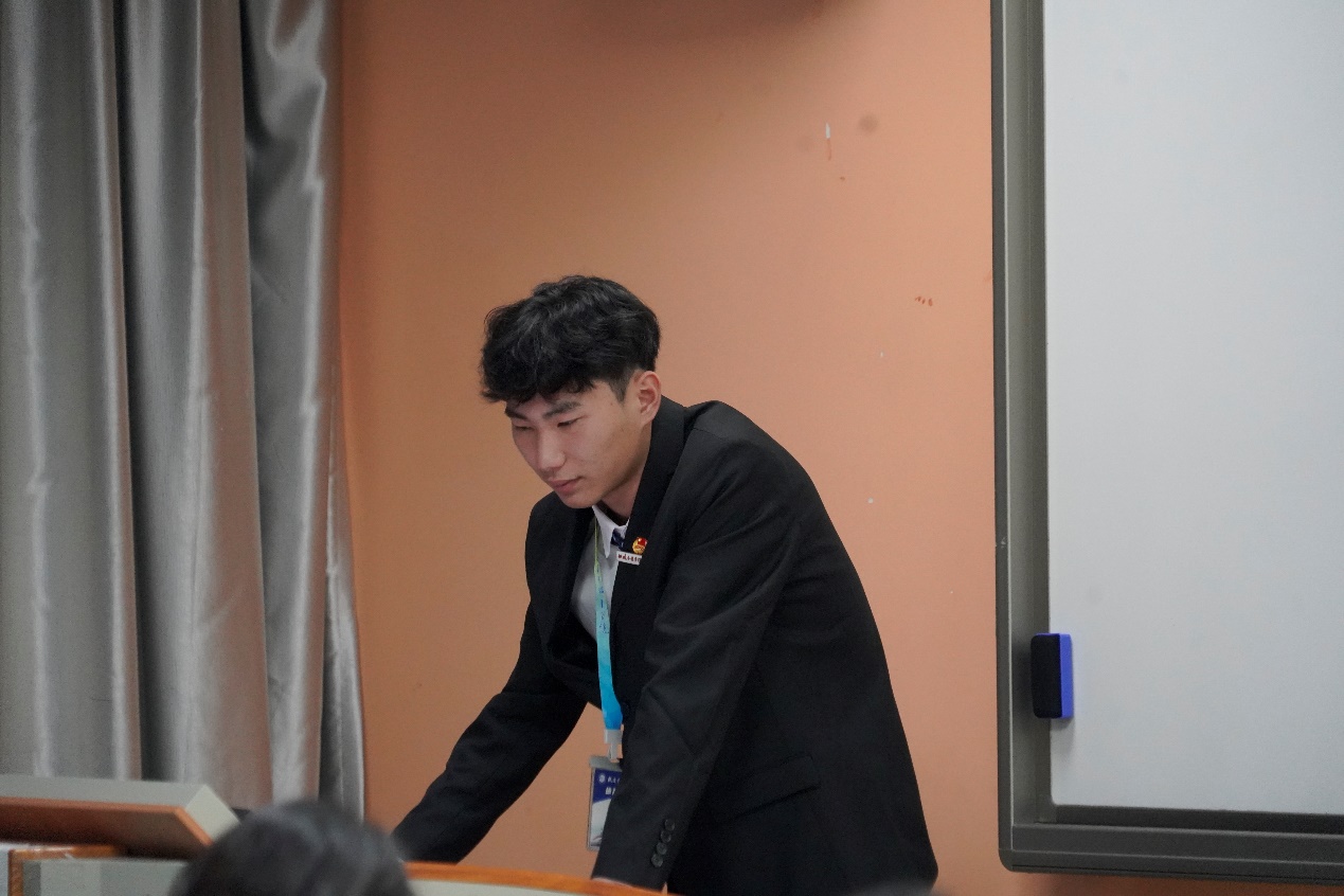 軌道交通學院分團委學生權益保障部部長黃興明,提出三全育人平臺建設,學院日常活動的開展以及輔導員材料收集的成果,輔導員也對材料收集提出建議,希望部門的改進。