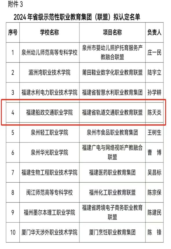 近日,福建省教育廳公布《2024年省級職業(yè)教育重點項目擬認(rèn)定名單》,由我院牽頭組建的福建省軌道交通職業(yè)教育聯(lián)盟被認(rèn)定為2024年省級示范性職業(yè)教育聯(lián)盟。